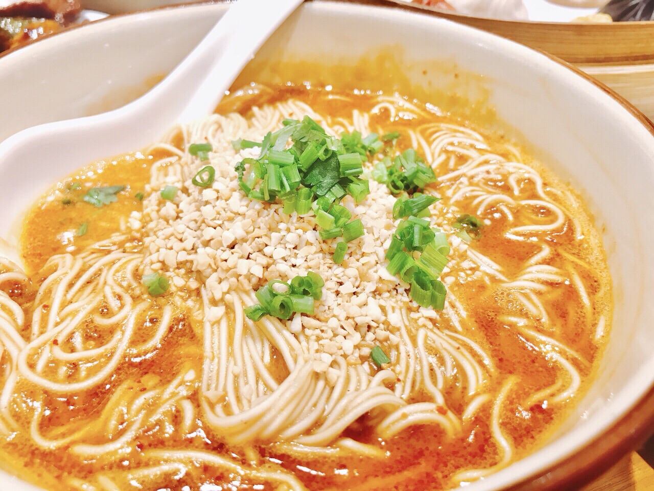 每隔一个月就想吃担担面,最爱的就是这家了!而且他家的小笼包非常有特色,八种口味八种颜色,晒到朋友圈很是吸引眼球。 【担担面】 我要爱死担担面了,超级好吃!微辣的酱汁,让不能吃重辣的人也可以接受,劲道的面条,被微辣汤汁包裹十分销魂。 【皇朝小笼包】 原味-丝瓜-鹅肝-黑松露-芝士-蟹粉-蒜香-麻辣,八种口味,看着指示卡吃,由淡及重的口味,皮薄但是不易破,蘸或者不蘸醋都能令人食欲大开。是必点的菜! 【春雨拌绿蔬】 清爽的凉菜,粉丝和绿蔬蘸着微酸的醋,很开胃。 【老干妈炒牛肉】 牛肉嫩滑,杏鲍菇很好吃,老干妈让整道菜口味变重,喜欢吃咸辣的人会爱吃这道菜。 【擂沙汤圆】 饭后甜品,是干汤圆~外面裹着花生碎粒,有坚果的香味,软软糯糯的汤圆里面,是香甜的芝麻馅。 【柠檬芦荟桂花蜜】 是赠的甜品,但是口感很棒,比较清甜。芦荟颗粒货真价实,一口咬下去会爆汁,桂花的香气是点睛之笔。 店名:乐忻皇朝(有多家分店) 人均:110元