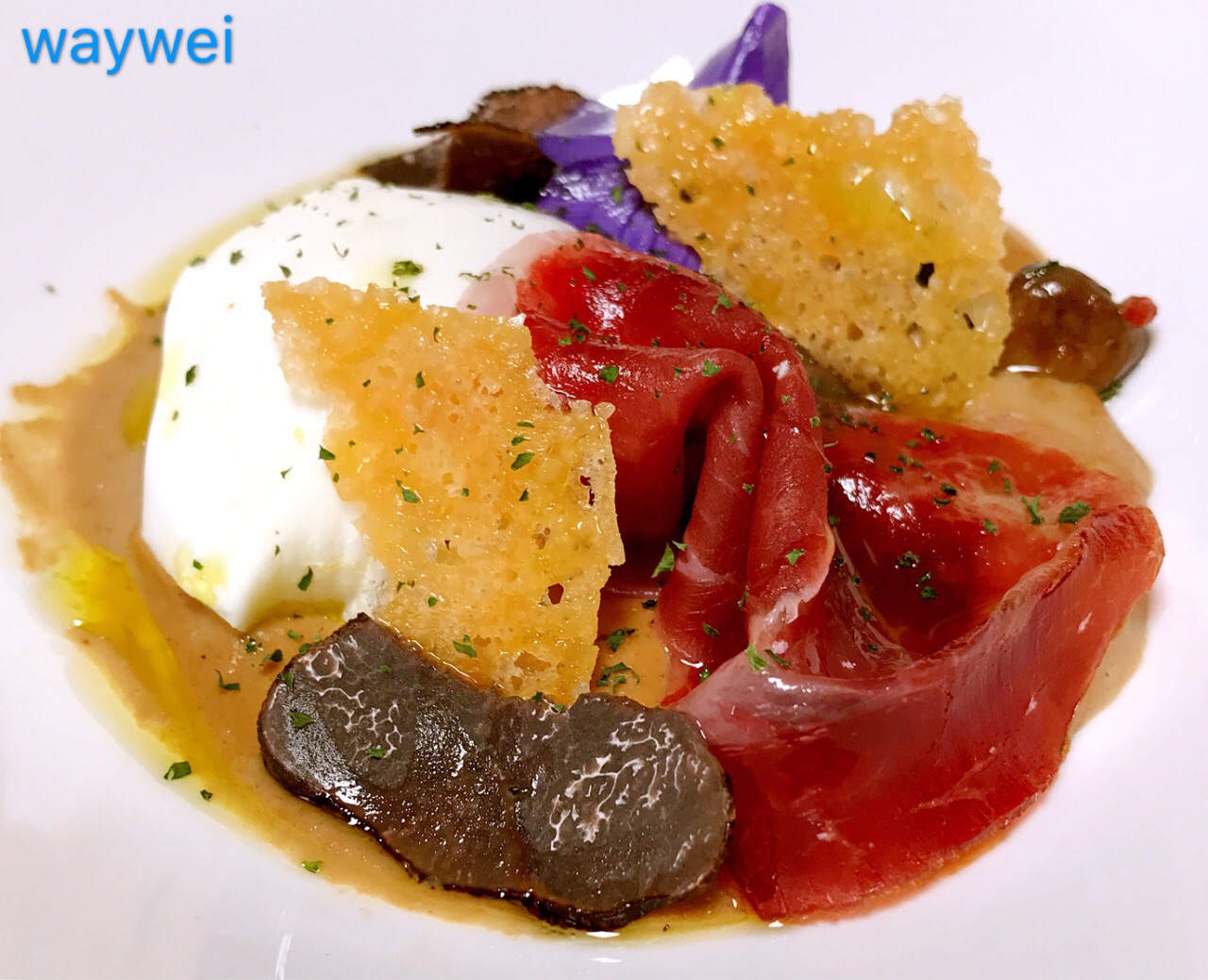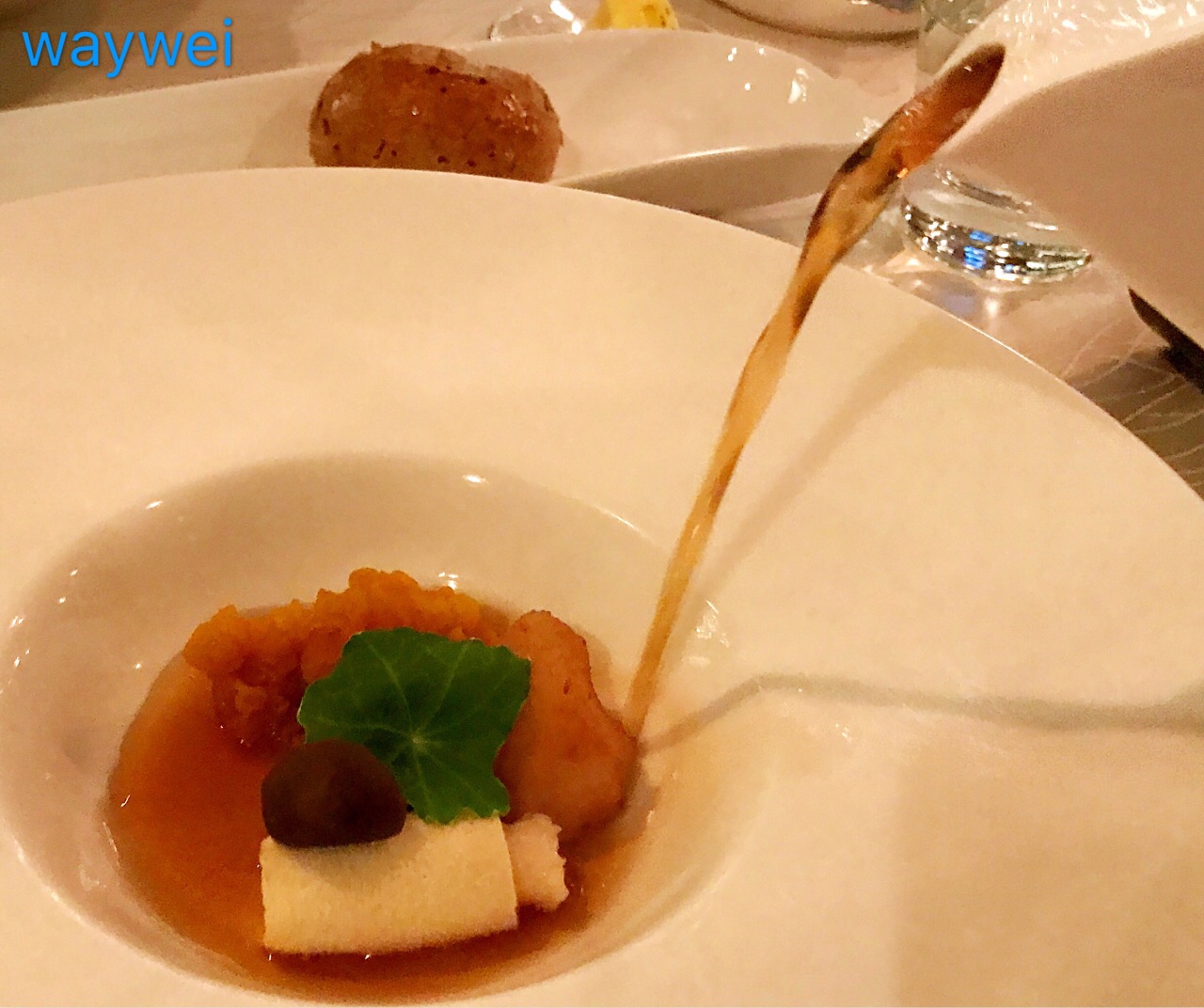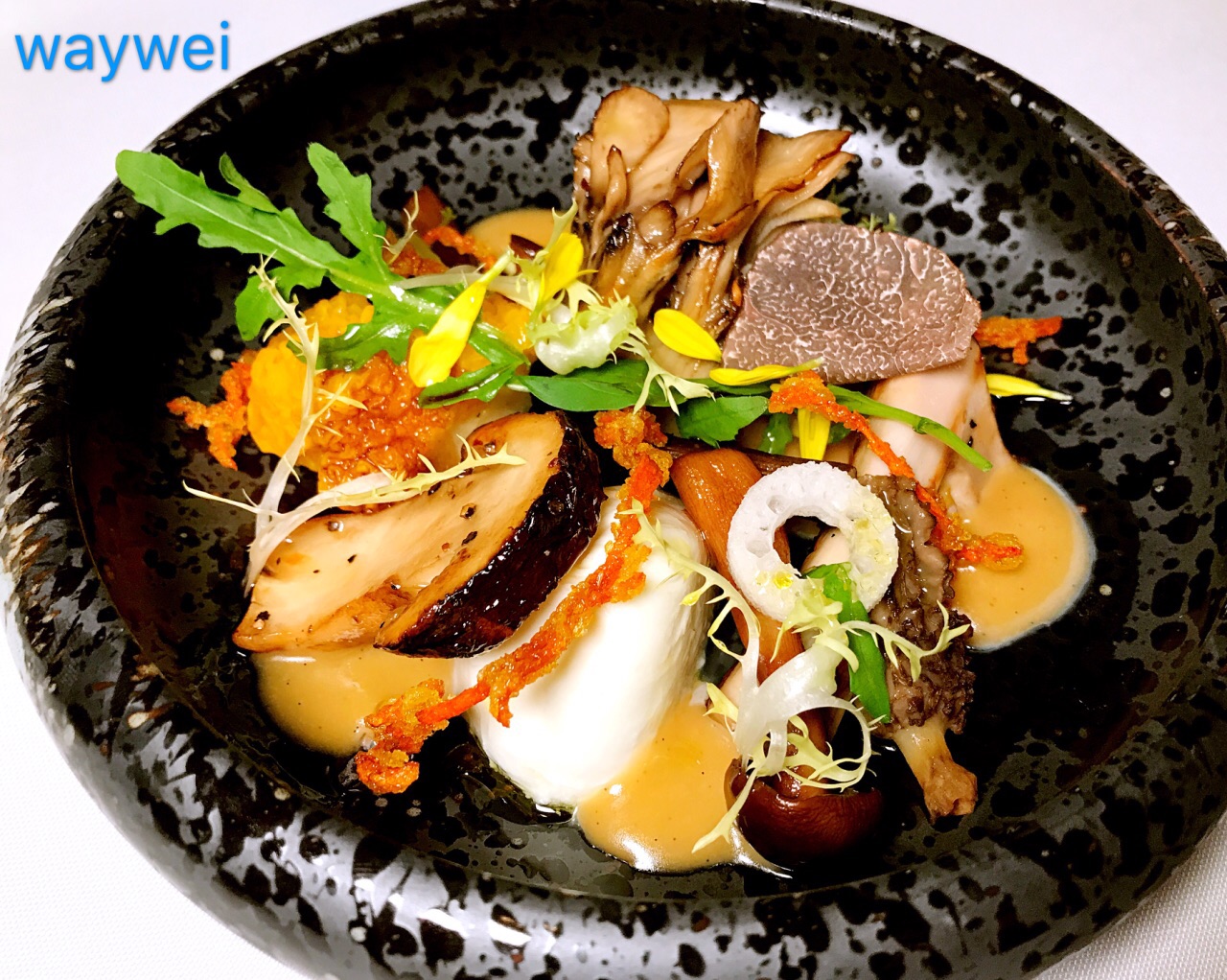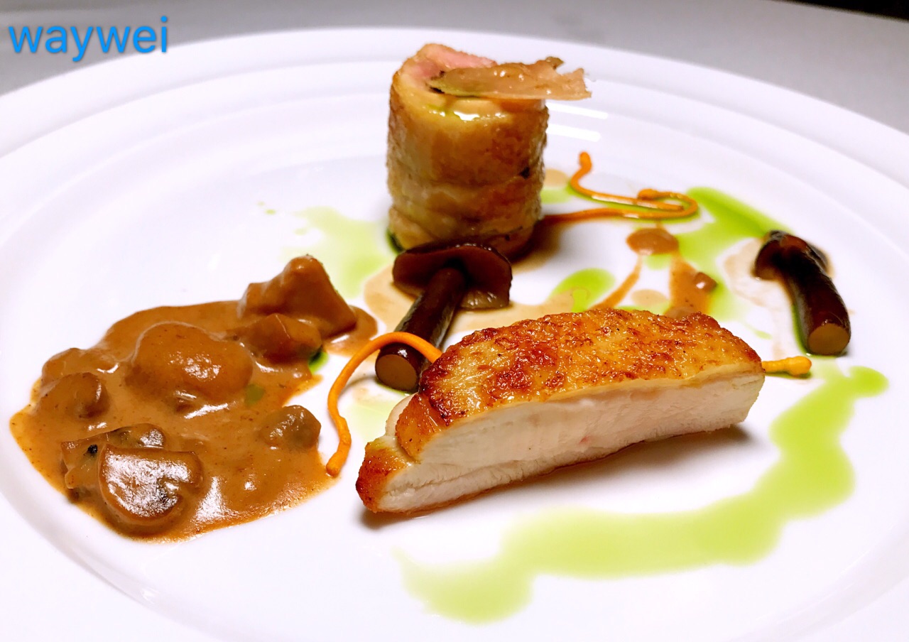 晚餐是在深圳观澜湖度假酒店吃的,云菌法式感恩晚宴。 前菜炭烤蘑菇,食材选取云南农民清晨手工采摘的野生蘑菇,配上意大利新鲜水牛芝士,点缀松露片,佐以香草油醋酱,香气扑鼻,爽口鲜甜。 云南野生牛肝菌捣碎成泥,配合日本兰皇水波蛋,嫩滑无比,烤帕马臣芝士片和西班牙火腿碰撞出层次分明的味道,颠覆了经典的火腿包裹哈密瓜,火腿咸香更突出。 清蒸竹荪酿虾胶,缓缓注入由30斤羊肚菌虫草花熬制的清汤,一点调味料都不放,已是鲜甜可口至极。 48小时低温慢煮云南高脚鸡卷,加入了绍酒烩蘑菇,增鲜不少。主菜盐焗牛柳火候恰到好处,牛肉鲜嫩多汁,配上野生菌泥和法式鹅肝汁,肉香和菌香完美结合,加上一颗牛肝菌黑鸡枞菌为馅的饺子,幸福满满的感觉。 圣诞限量款甜品貌美如花,颜值爆棚已经不忍破坏,狠心品尝带来的是意外惊喜,好吃到停不下来!