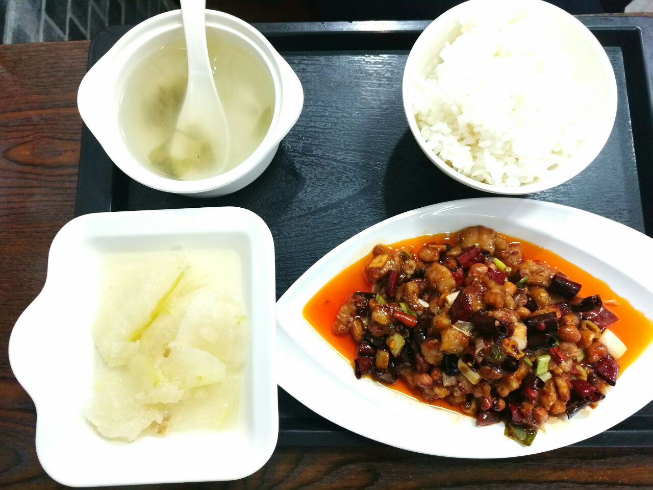 宫保鸡丁肉质细嫩,花生米微脆,属美妙的荔枝味。鱼香肉丝糖醋比例适当,肉丝爽滑细腻。红烧豆腐嫩而入味,小炒肉有点象盐煎肉的做法,无肉皮,拌有豆豉,配菜是青椒,比较下饭。店面不大,干净整洁,家常菜馆,炒菜、烧菜、套饭、面条、米线比较齐全。老板很和善,上菜很快,食客络绎不绝。结账方式多样,方便快捷。