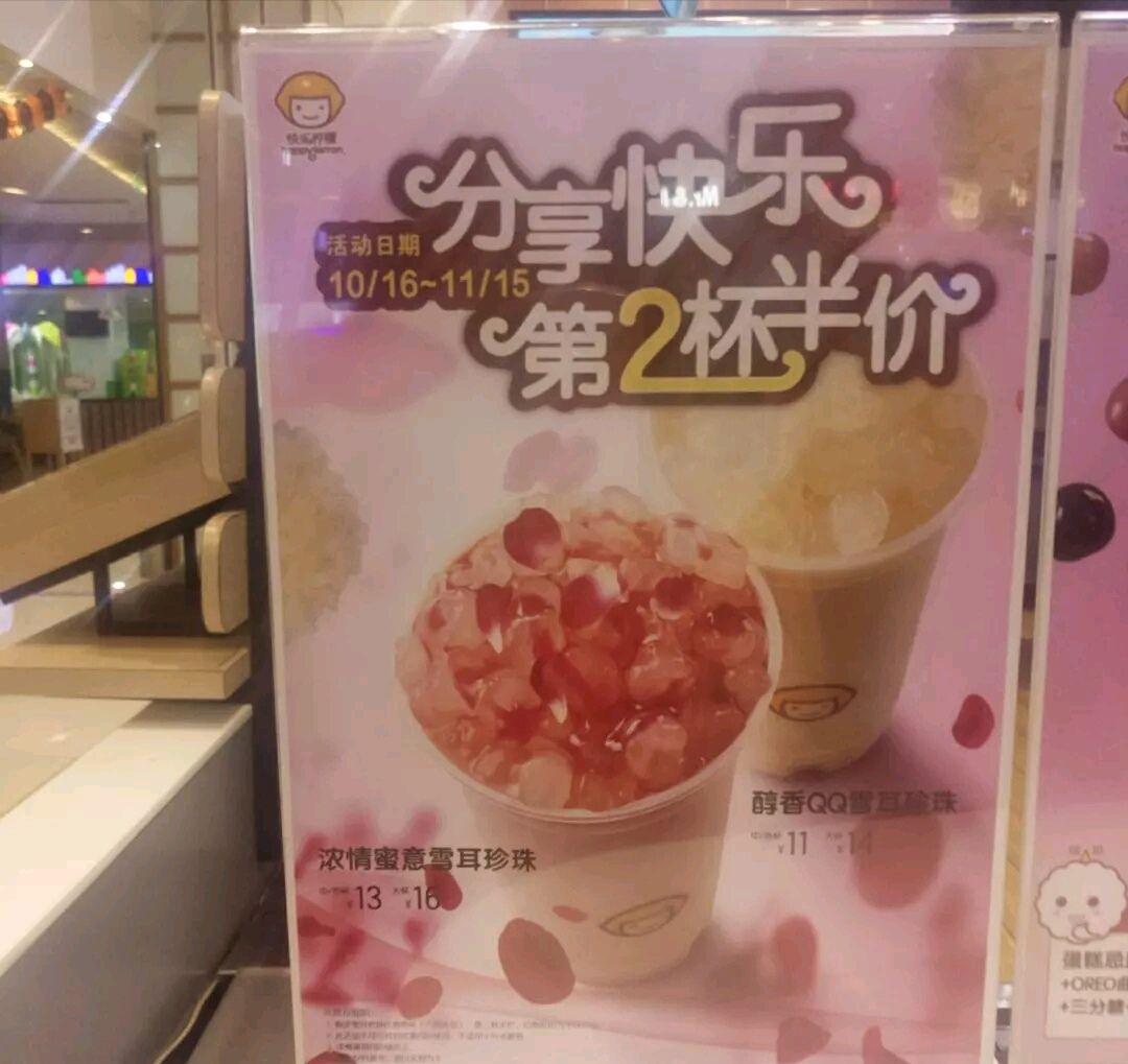 网红奶茶~是蛋糕忌廉珍珠奶茶又多添加了小芋圆和奥利奥曲奇~味道比原版更新颖~更有味~ 醇香QQ雪耳珍珠~因为浓情蜜意雪耳珍珠没有了~就要了两杯醇香的~没有预期的好~就是奶茶叫上银耳和珍珠~银耳味道不错~但是珍珠却只有两颗~我还以为是我没喝到