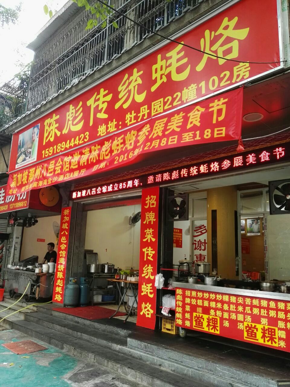 第一次来吃,没什么人,点了蚝烙,很好吃,外脆里嫩,干面一般般吧,蚝烙粥很鲜,还不错16年汕头行的又一家店。第一次来吃,没什么人,点了蚝烙,很好吃,外脆里嫩,干面一般般吧,蚝烙粥很鲜,还不错。老板很会弄,都是他一个人做的…