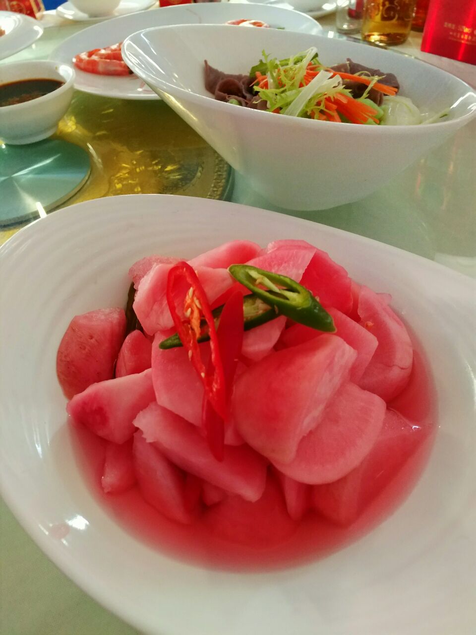 口味比较清淡,菜品非常丰富,店堂很宽敞,装修上档次,适合宴席,婚宴、寿宴的性价比不错。由于婚礼仪式时就开始上菜,而且呈上的速度过快,许多菜品还没来得及品尝就被服务员上的下一道菜遮住了,重重叠叠的满满一大桌。个人比较喜欢的是菊花鱼,花儿型漂亮,汤汁儿是西红柿勾制的荔枝味,咸甜适度,鱼肉细腻、新鲜,一个人吃了半条鱼。糯米排骨很家常、清淡。蒜蓉粉丝扇贝与白灼虾很平常,加上呈上时间长,冷了,有些腥。吃酒席我更看重美食的颜值,味道与服务倒是其次。服务员很热情,迎宾有迎有送,店面形象好。