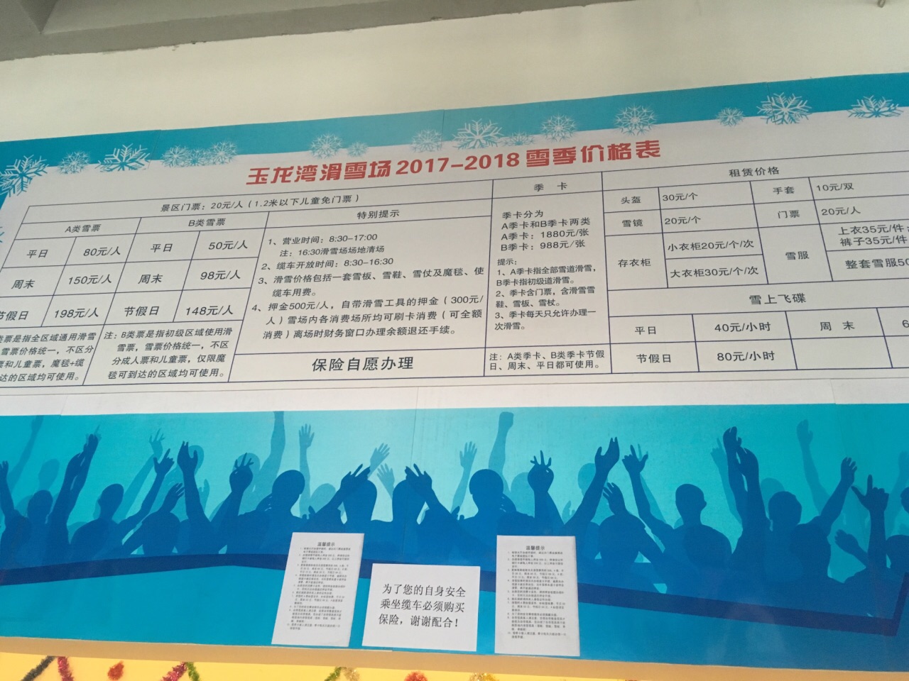 试营业期间去的,票价非常便宜。环境一般,吃饭的地方比较少,周围没有其他配套设施试营业期间去的,票价非常便宜。去的时候开了一条初级道,一条中高级倒。中高级弯道角度比较大,需要坐缆车。环境一般,吃饭的地方比较少,周围没有其他配套设施。除了滑雪,没什么玩儿的。