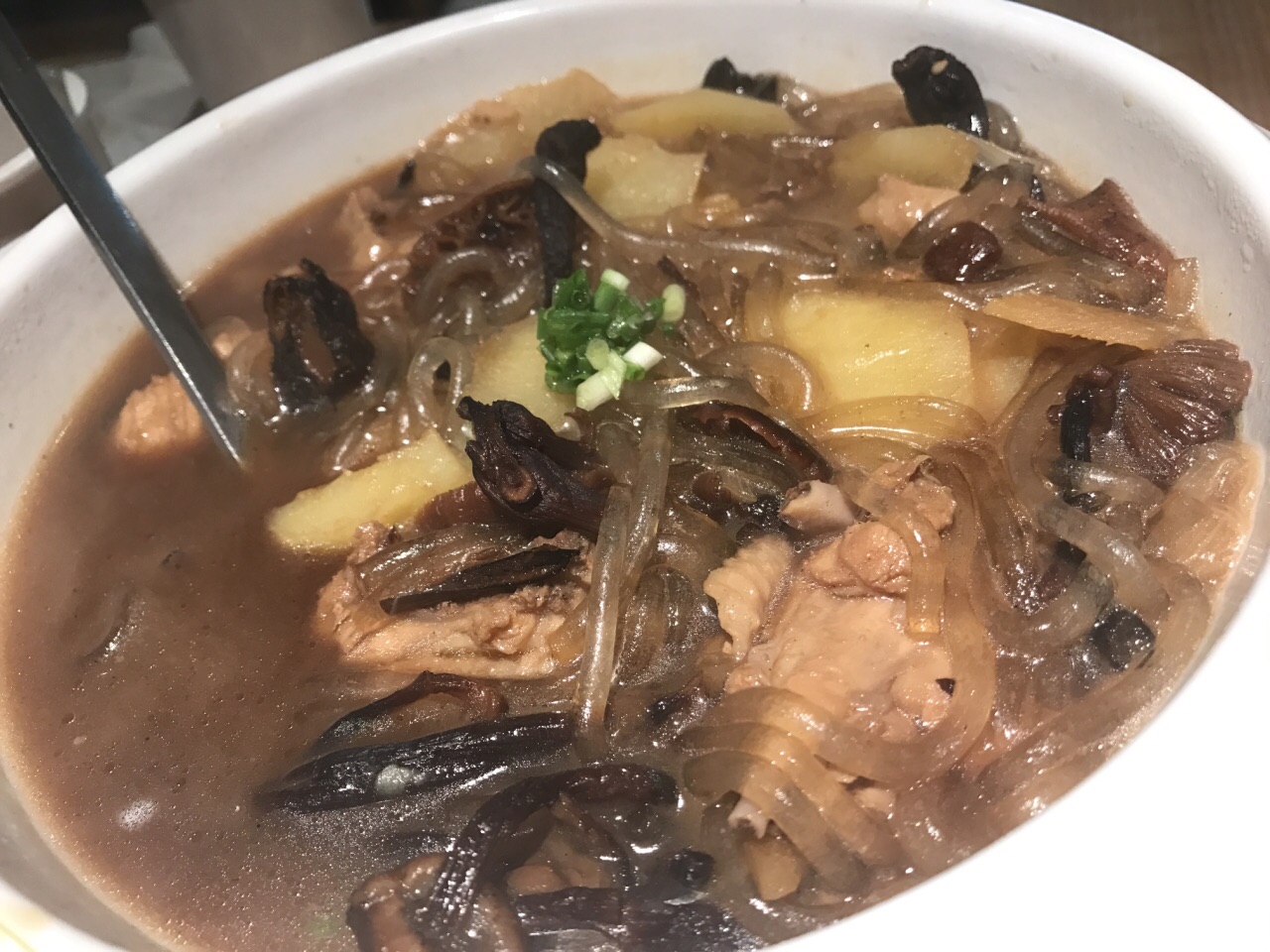 凤爪挺有嚼劲的,也满入味的。 小鸡炖蘑菇,鸡肉的部位不太好,而且有点老,不太像是小鸡的肉质