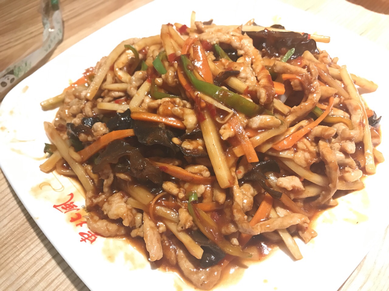 就是突然很想次酱大骨,但店员告知卖完了,那只能点别的了~ 菜都是以东北家常菜为主,时不时也能见到几个熟悉的家常菜式。 凤爪挺有嚼劲的,也满入味的。 鱼香肉丝的量挺多的,酸酸辣辣也算比较开胃。 小鸡炖蘑菇,鸡肉的部位不太好,而且有点老,不太像是小鸡的肉质。 油炸玉米粒,类似玉米烙的分解,太油腻了~ 觉得菜的整体水准相比前2年有些下降~