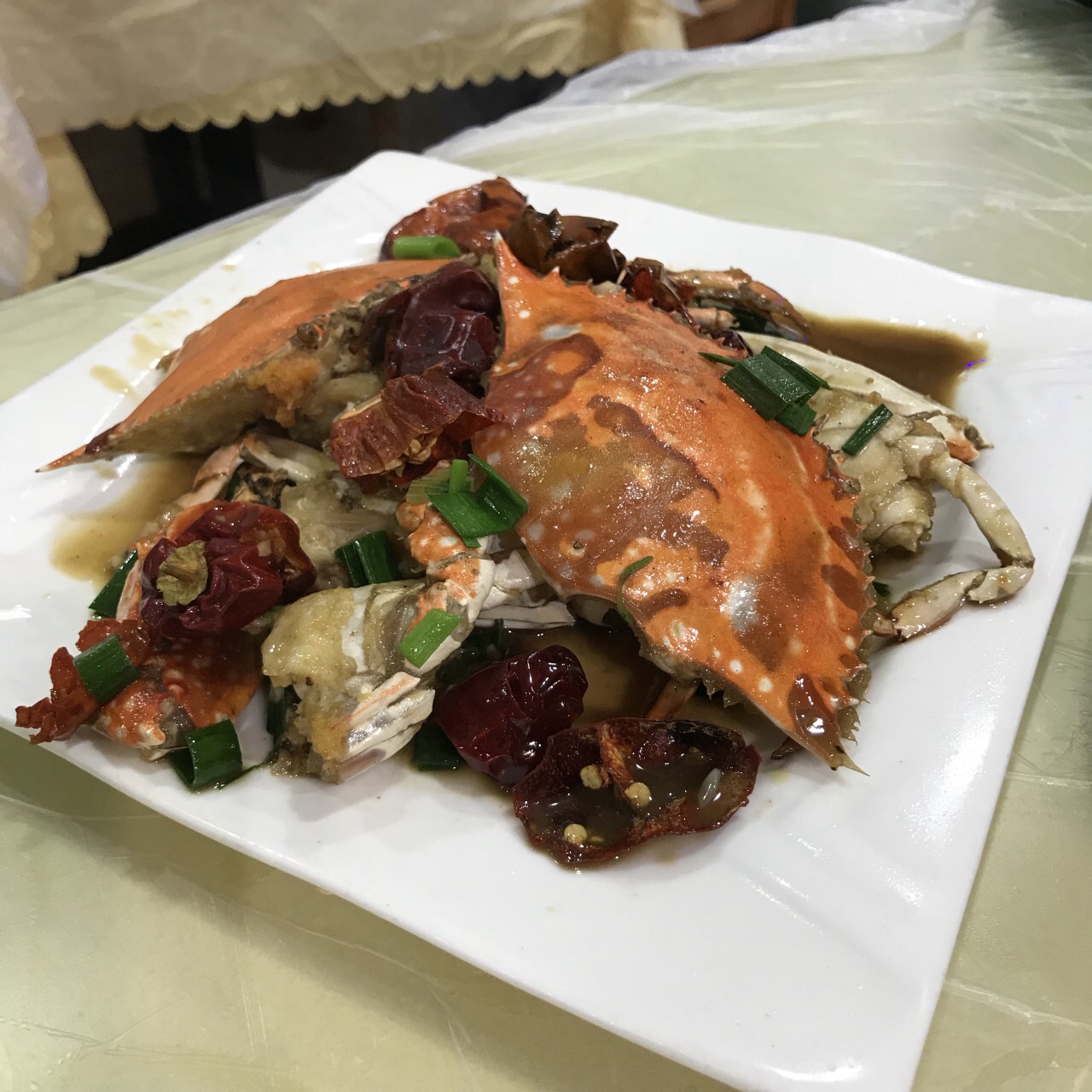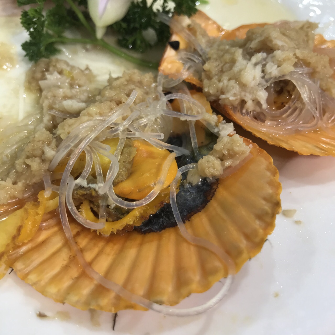 清蒸扇贝,新鲜就是好吃,粉丝也很入味。 姜葱炒蟹,用的是花蟹很嫩的肉质,也很饱满。总体感觉不错