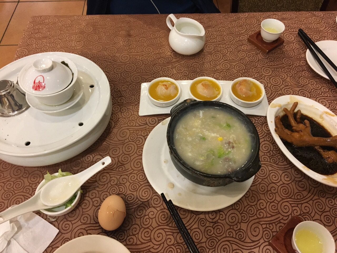 梅峰据说是番禺最好吃的,点了粥自选三样煮,确实很好吃,虾饺中规中矩吧,个别没有挑虾线,豉汁排骨很好吃来到广州,住到番禺吃的第一顿夜茶,梅峰据说是番禺最好吃的,点了粥自选三样煮,确实很好吃,虾饺中规中矩吧,个别没有挑虾线,豉汁排骨很好吃,桂花铁观音茶很好喝,清香有余