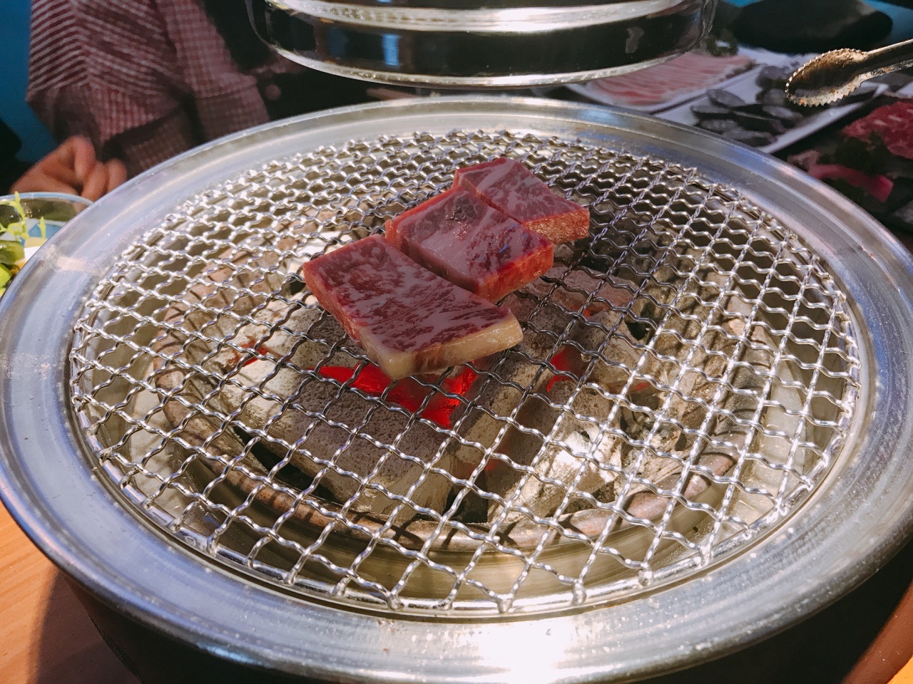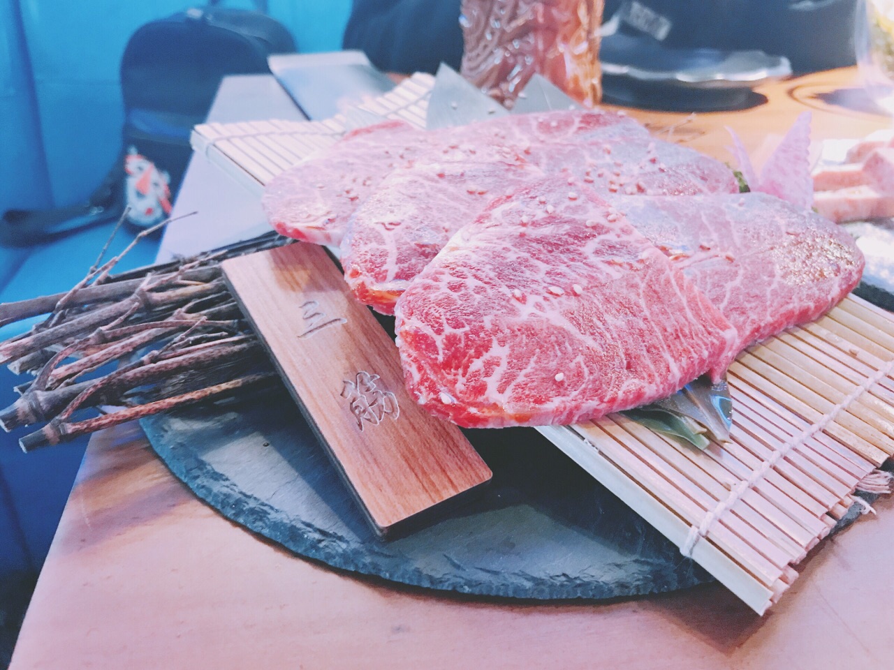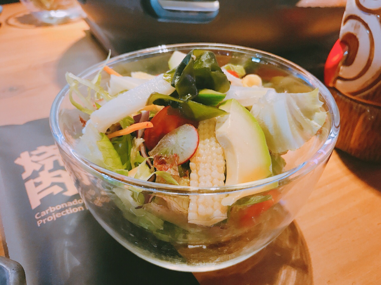 老门东新开的一家烧肉店,在浮遇记的旁边,进入老门东右手边第一个巷子拐进去就是。店内环境是老式电影院的感觉,非常有感觉。蔬菜沙拉很喜欢,里面有牛油果、水果玉米、紫甘蓝、脆萝卜、秋葵、生菜等等,种类可以说是很多了,调沙拉的酱汁也很特别,是其它店没有的,吃肉配沙拉可以解腻。牛小排是粉白相间,颜色很是好看,烤完后是一粒一粒的,咬在嘴里会嘣汁的那种。这家的牛舌是切成条的,烤完之后吃在嘴里很Q,跟一般的切片牛舌口感不一样。三筋特别满足,肉很大片,条纹清晰,吃起来非常嫩。还有墨鱼肠也是分量满满,里面的肉粒很饱满。它家的各种茶饮都很好喝,杯子真的是又大又重,比起其它店喝水的杯子,这家店是要让客人喝水喝饱咩。煤球饭是解腻的,但是口感很丰富,可以吃出来里面有很多东西,满足。