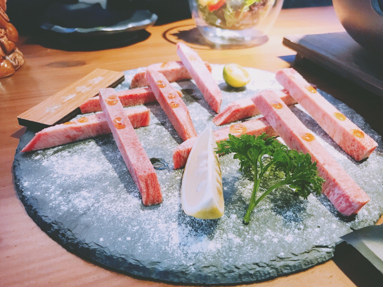 这家的牛舌是切成条的,烤完之后吃在嘴里很Q,跟一般的切片牛舌口感不一样