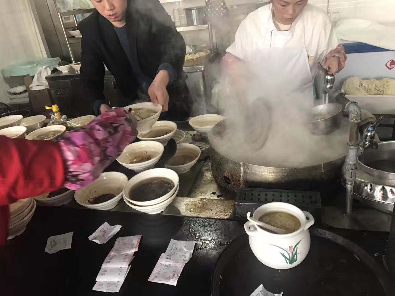 不愧老字号招牌,店里的扬州小吃种类非常多,份量还很大,价格又亲民。烫干丝是豆腐丝用开水烫熟,加入姜丝,酱油,香油,味道鲜美,而且装了满满的一大盘。扬州知名小吃千层油糕,香香的,甜甜的。招牌小吃虾籽饺面,里头的馄饨皮薄如纸,肉馅鲜美饱满,面条筋道爽滑。以虾籽熬汤,浓浓的胡椒味配上面条,别有一番风味。 东关街这家店面很大,足够坐上百人,客人很多,看上去大多是当地人,生意不错。