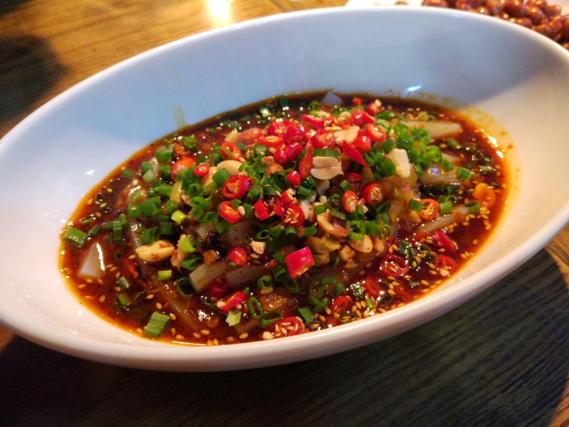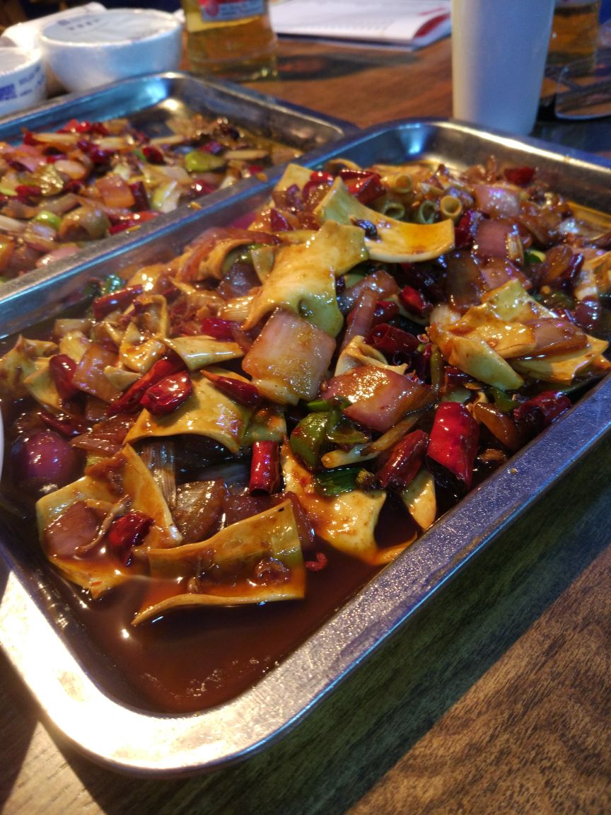 南滨路评价和人气都很高的一家店,店里面都坐不下需要坐到沿街临时搭的棚里。招牌火爆系列口味都差不多,店员也会建议选一到两种就可以了。特色菜红江鸭,桃园三结义等都很好吃,也很有特点。传统菜麻婆豆腐,鱼香肉丝也是滋味十足,很棒的一家店。