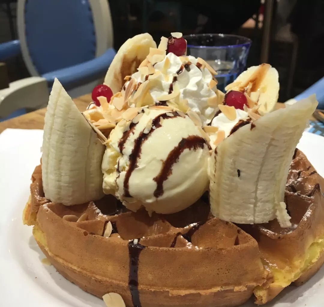 在海信B1 一直长草很久的一家 从门口经过时候就觉美美的很漂亮 喜欢店里兔子耳朵的椅子 很可爱 喜欢这里的华夫 份量蛮足的 吃起来感觉很扎实 闺蜜更喜欢那个红酒牛肉饭 入味好吃 连里面的胡萝卜都很入味呢 总体感觉挺好 就是菜品种类有点儿少