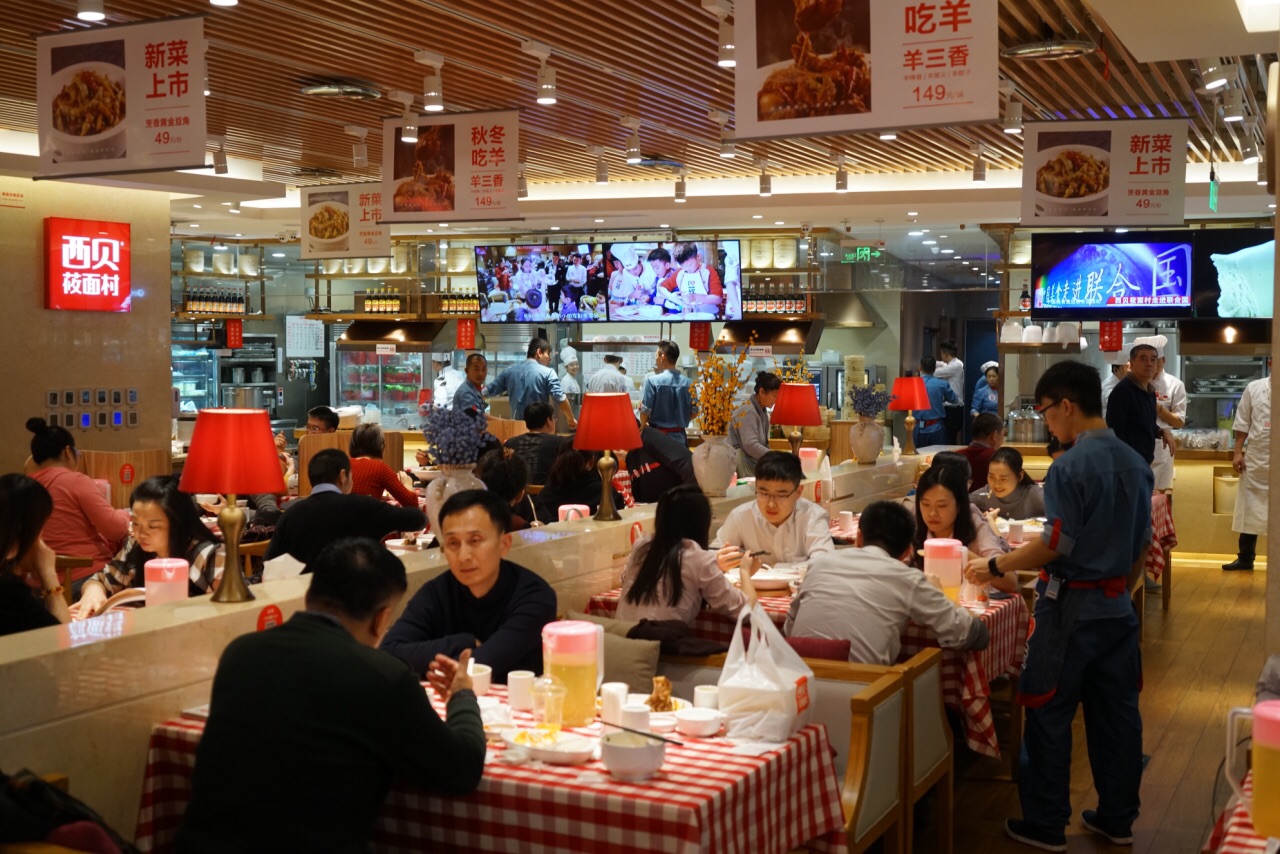 #西贝美食?西北美食?# 之前在北京上海都吃过西贝,所以对我来说没啥新鲜感,避过开业之初的人流,工作日中午和朋友过来随便吃点。两个人排号前面有3桌,倒是挺快就吃上了。 味道在连锁餐饮中不错,嘈杂且拥挤的就餐环境让人有些不适,价格相对食物价值偏高不少,服务跟进及时甚至过度。我不喜欢这种就餐感受,可能以后来的次数很少,但在济南餐饮中它依然值得我给出四星。 【菜品】 西贝很难做出令人拍案叫绝的五星菜品,主力菜品都能保持到四星以上水准,这其实很难,足以在普通大众那获得极佳印象。 #黄米凉糕# 属于西贝的必点爆品,味道确实比济南餐品相似的西北45度更佳。入口微凉、香甜软糯,相当的美味; #烤羊排# 用的小山羊肋排,几乎没什么膻味,火候把控不错,肥瘦适中,外层焦黄内里香嫩,沾着辣椒粉吃风味更佳; #羊肉串# 比其他西贝餐厅烤的就好那么一点,主要还是选用羊肉好,我喜欢; #浇汁西红柿莜面# 多年招牌产品,莜面口感Q弹,麦香浓厚,浇上带胡萝卜丁的西红柿酱甚是美味,是我吃西贝的另一个必点菜品; 【环境、服务】 明亮紧凑的大厅布局,最大限度的安置了更多餐位,两人方形小桌非常局促,点不几个菜桌面就快连手机都放不下了,红格子花布漂亮。紧凑的空间让我总觉得身边来往的服务员和客人会碰到我,果不其然,一顿饭下来被刮碰两次,实在是影响我吃饭的心情。 从主管到服务员都会不停来看桌子上的沙漏,记得西贝好像承诺上菜超时免费赠送之类的。服务态度还是不错的。中间一个服务生让扫他手中的二维码加店长微信,会额外送个红豆沙做馅儿的小窝头,挺好的营销手段。 【结束语】 如果你想有舒适的就餐环境和节奏,他家并不是个好选择。 如果你只想吃些味道不错的西北特色又不在意性价比,那他家挺合适,属于商场连锁餐饮能做到的顶尖口味那一档了。