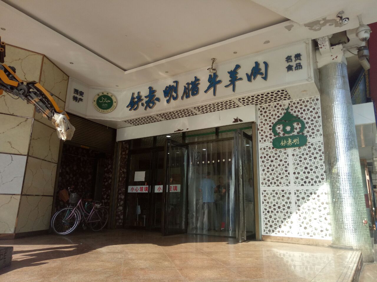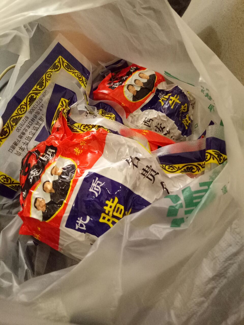 来西安吃腊牛肉夹馍有点上瘾哇,离开前带点腊牛肉回家,朋友推荐的这家“铁志明腊牛羊肉”。 桥梓口西大街的十字路口,门口有个大黄蜂机器人。卤制好的牛羊肉看着好诱人。下午去时人不是太多,排队时间不长。 切肉的师傅动作利落,一斤几乎刀刀准,切好的肉用纸包好保持透气性,现场可以抽真空包装,酱的和腊的牛肉牛腱各买了3斤。 腊牛肉回家干切成薄片,放点辣油,蒜末,香醋,麻油,凉拌吃也很赞~