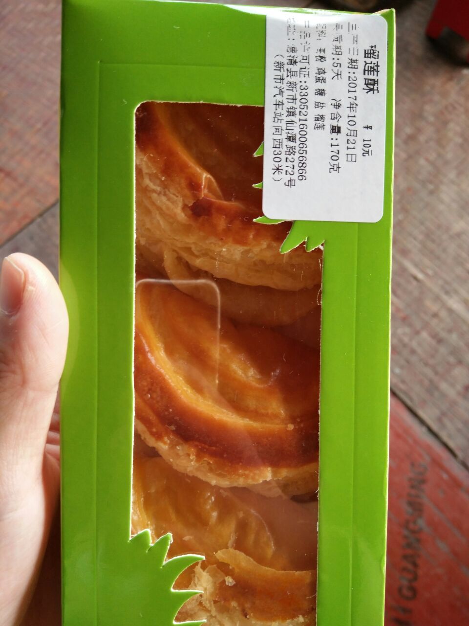 在新市镇上开元曼居对面,旁边是排挡小吃。出来玩想给第二天备点点心就走进了这家店。因为是晚上,所以没有多少面包了。买了肉松餐包,榴莲酥和小酥饼。榴莲酥味道不错,就是只有三个,小酥饼就这样,肉松餐包虽多,但没型,吃吃也这样。
