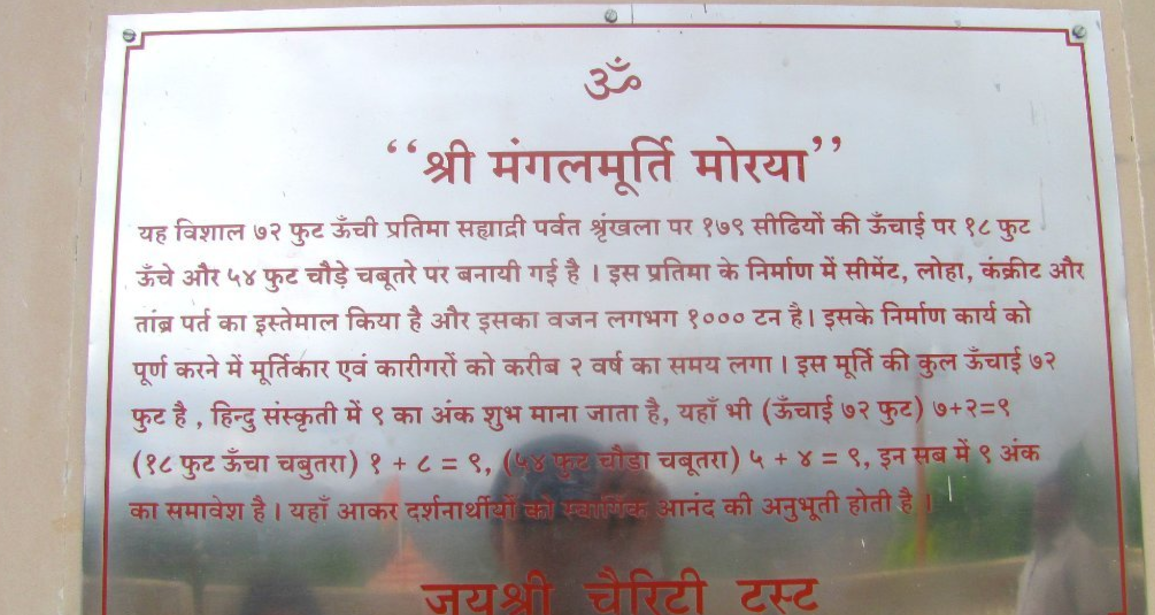 这个地方没有阴凉处,所以最好在清晨或傍晚去游玩。坐落在老孟买的浦那高速公路上,小贩基本没有坐落在老孟买的浦那高速公路上,小贩基本没有。这个地方没有阴凉处,所以最好在清晨或傍晚去游玩。这个地方也有一个小花园,看起来也很干净,寺庙里面有一尊甘尼萨勋爵的雕像。