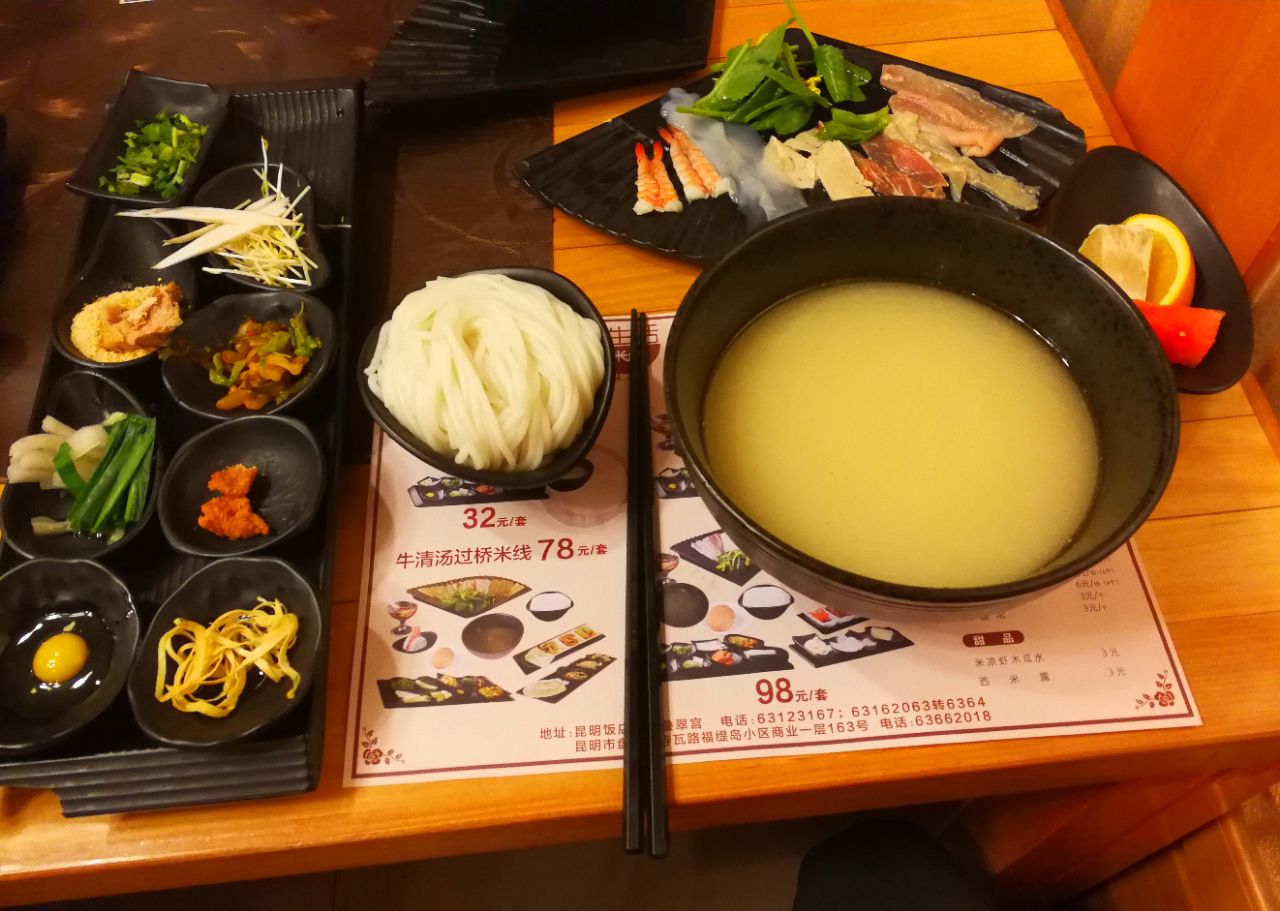 网友2017-12-01之前听朋友说昆明饭店的过桥米线不错,今天路过就来尝尝之前听朋友说昆明饭店的过桥米线不错,今天路过就来尝尝。生意很火爆,中午近一点到的竟然还在排队叫号,米线上来不论摆盘、味道的确都很棒,汤尤其地道,应该是现在昆明最好吃的过桥米线之一啦[憨笑][憨笑]