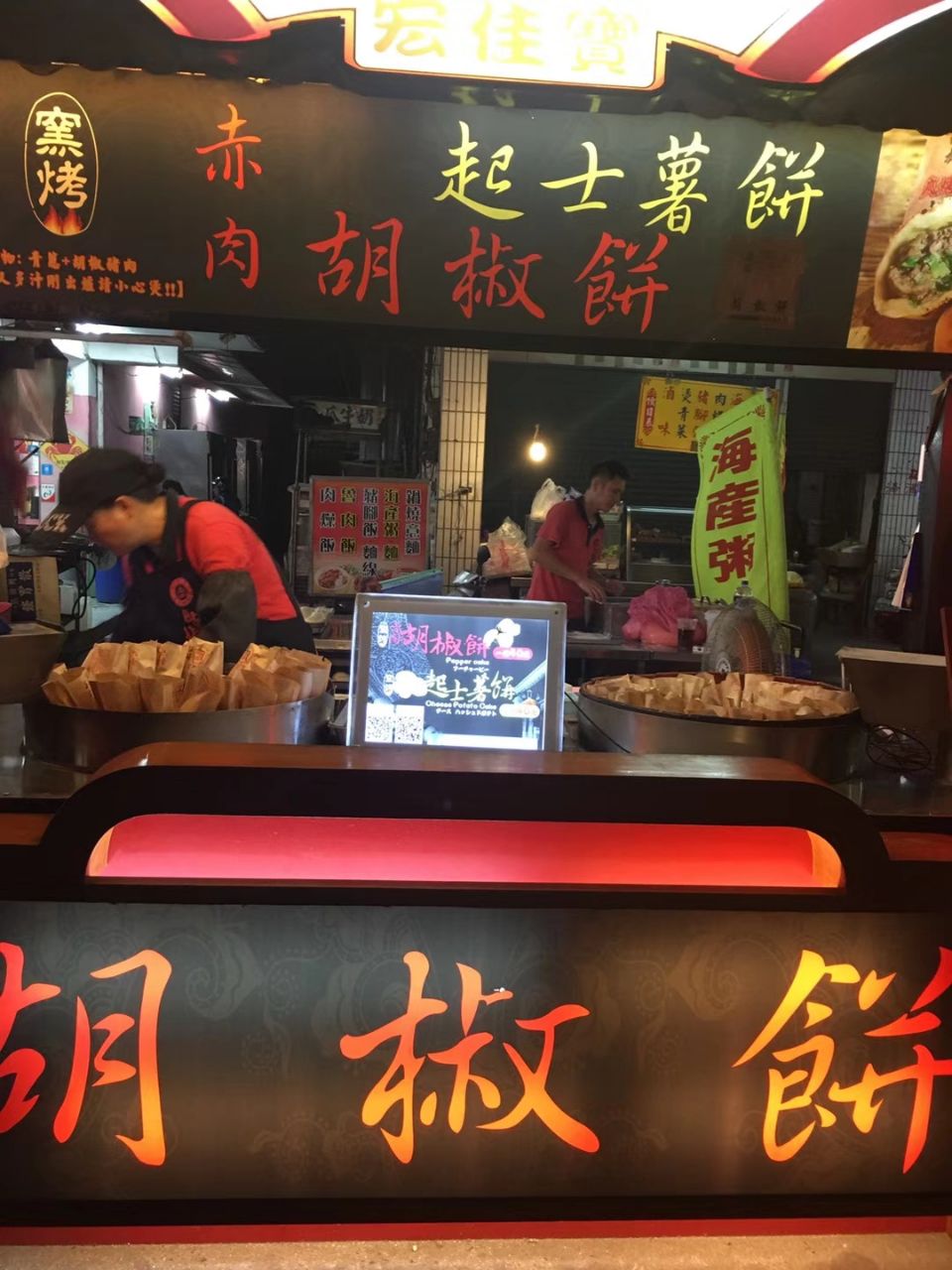 宏饼铺是高雄六合夜市一个著名的摊位,这里做的胡椒饼很有特色,胡椒饼的外层十分酥脆,里面包着的陷料味道很美,咬上一口香气扑鼻。听说这里到19点天黑以后总是需要排队才能买到胡椒饼,于是我们去得比较早,没有赶上排队的高峰,很幸运。