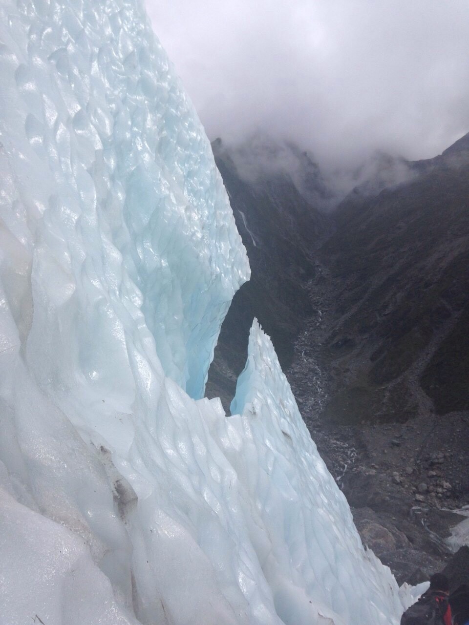冰川探险健行历时4个多小时,上坡下坎,穿洞爬行,累并快乐着,有趣至极!有的地方异常陡峭,需要绳索奋力攀岩,有的非常狭窄,只容一人侧身贴冰缓慢移动而出,有的就是一个小冰洞,只能手足并用的爬过,稍不留意,便碰着了头,卡着了臀