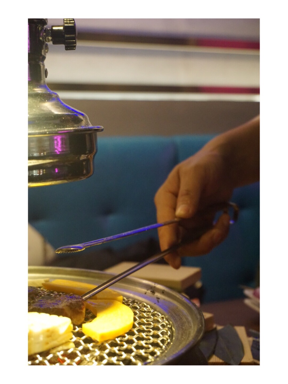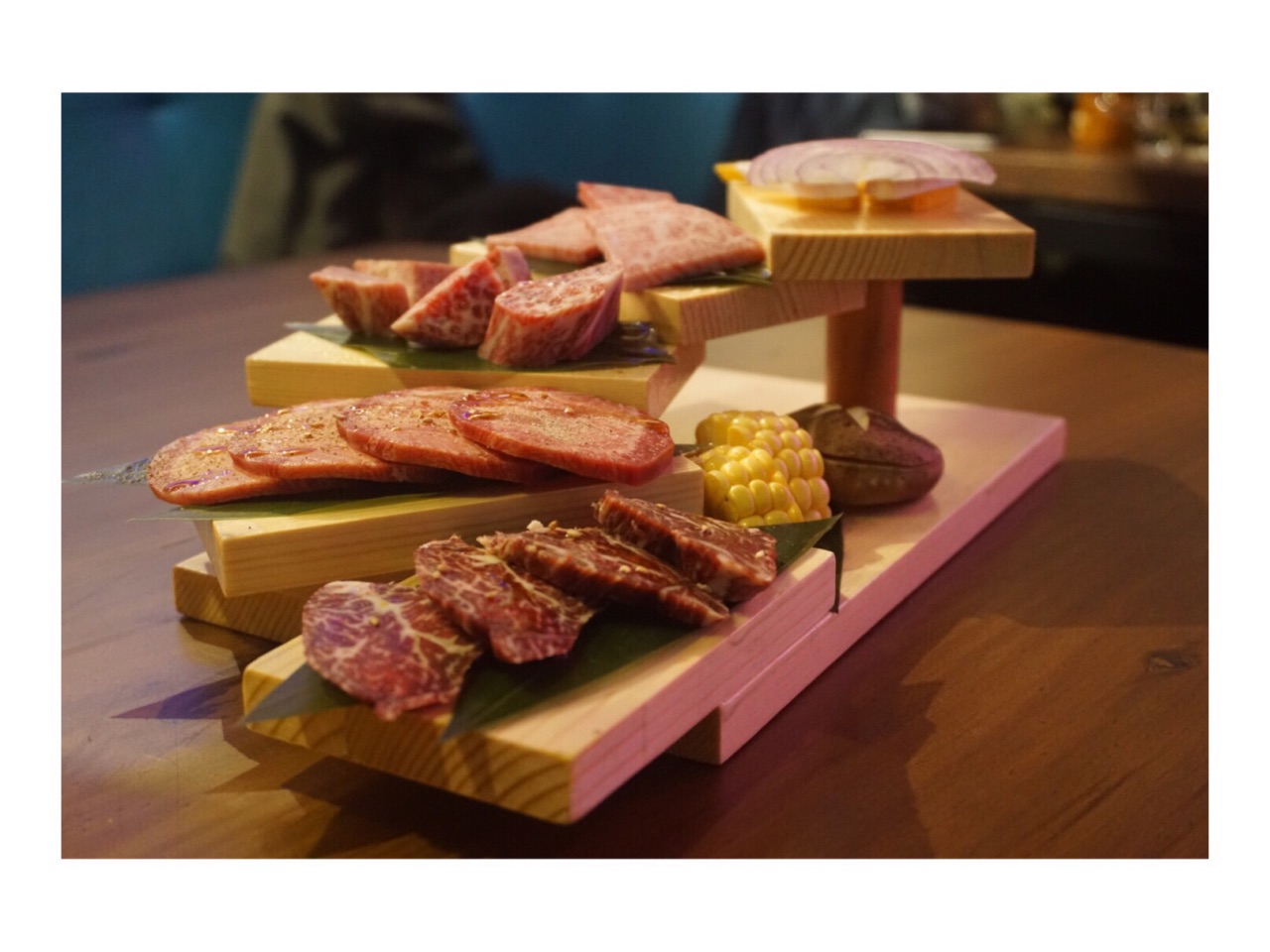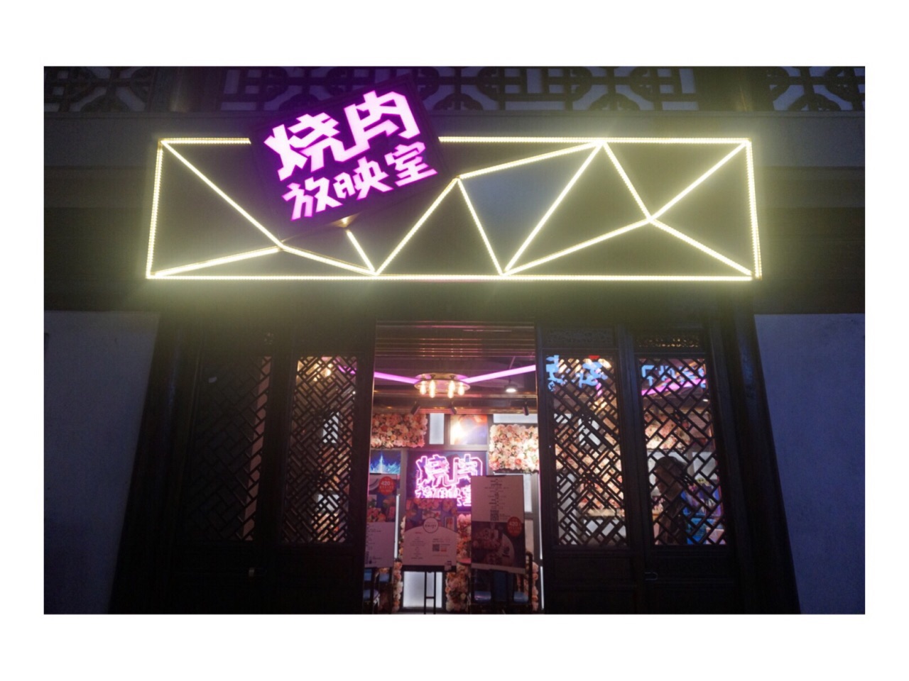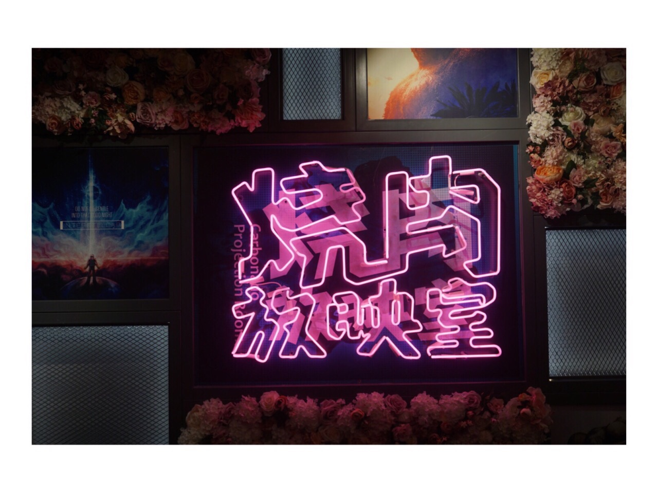 烧肉放映室,一家以电影为主题的烧肉店。 店铺位于夫子庙老门东景区内,近浮遇纪。 一楼粉色花墙是特色,二楼的装修更有味道。 采用多镜面、LED灯、金属框架,纵横交错,时尚摩登。 店员服务很棒,一对一帮忙烤制,会简单介绍,很客气,点赞! 蔓越莓酵素,冬天实在是太冰,没有桂花乌龙来的暖和。 和牛拼盘:极上西冷 极上眼肉 和牛牛小排 和牛厚裙 时令蔬菜。 食材品质好,味道自然不会差,不想一一介绍,比橘炎胡同好吃点。 明虾,肉质饱满,加入了柠檬汁提鲜,入口Q弹紧致鲜咸。 贝柱,品质真棒,个头非常大,嫩糯鲜香,入口略具回甘。 放映室烧肉伴侣,煤球造型,味道又酸又咸又甜。 我实在是欣赏不来,吃了一口,让人怀疑人生。差评! 个人还是更喜欢甲创作点。