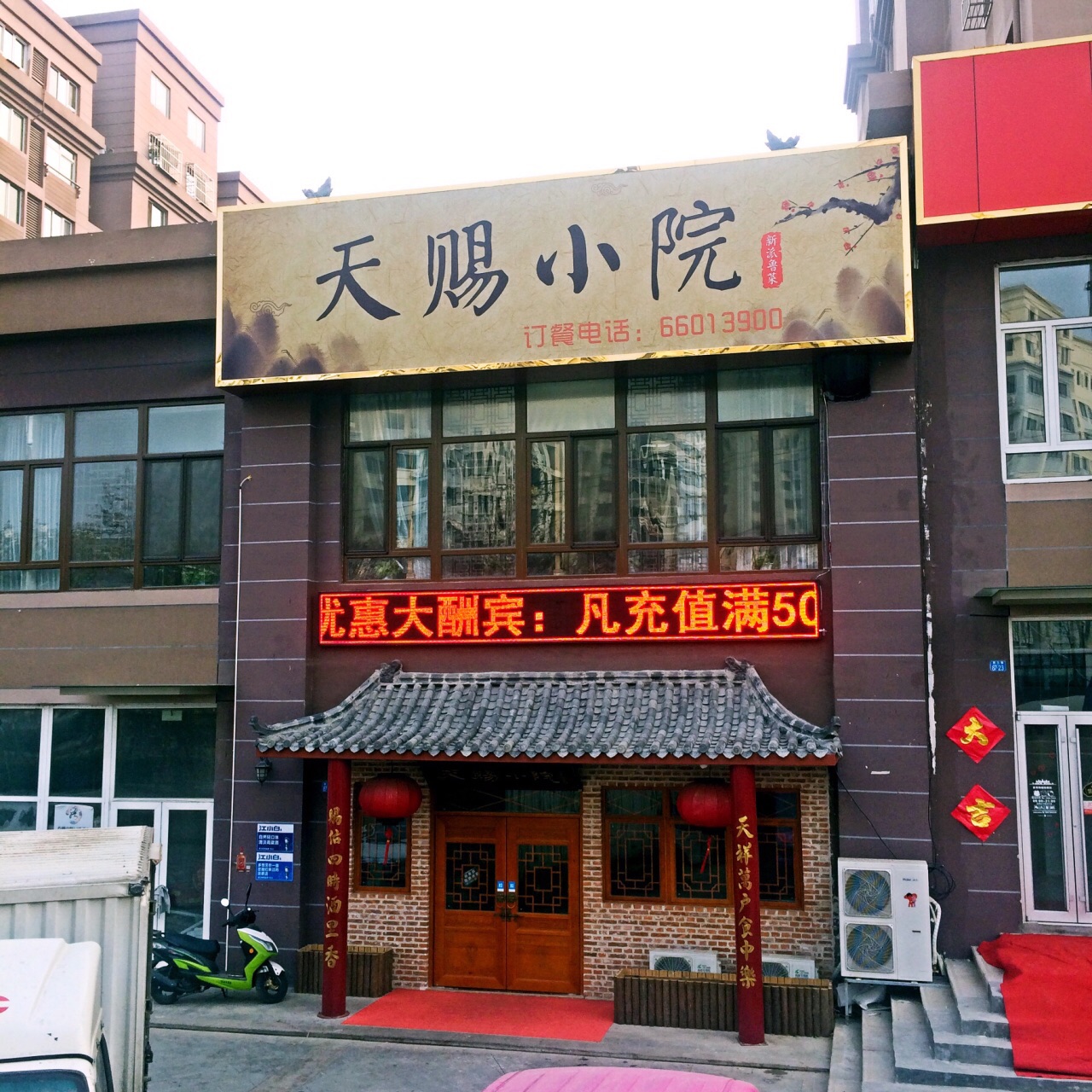装修很好 两层楼 座位很多 包间很多 菜品有好吃正宗的芥末鸡、爆炒腰花、土鸡两吃、麻酱大拌菜 ...今天中午拍的是潍坊菜 老板和大厨都是潍坊昌邑人 在新开的店里 装修很好 两层楼 座位很多 包间很多 菜品有好吃正宗的芥末鸡、爆炒腰花、土鸡两吃、麻酱大拌菜 酱猪头肉 这里适合大聚会