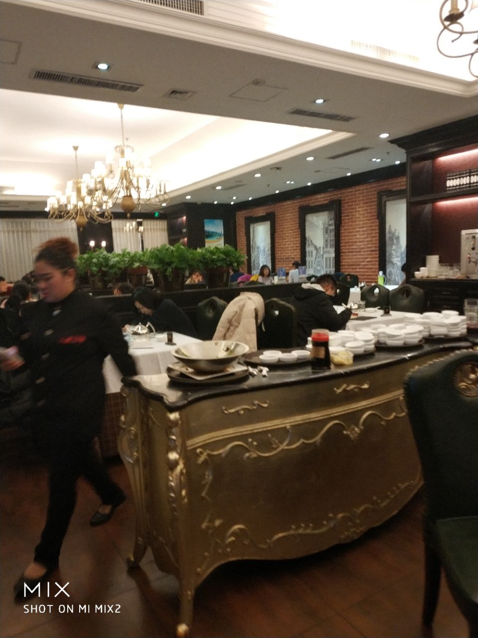 金春禧,是济南的地方特色菜馆,二十年前在八一金春禧家庭聚会,那时候就是以实惠为主的,装修也很朴素。和谐这家,看似是转型升级了,全部欧式装修,大幅的壁画,整面墙都是红酒装饰,皮质欧式沙发,显得非常上档次。当然价格也上了一个档次,三人餐的话人均要60元的标准。