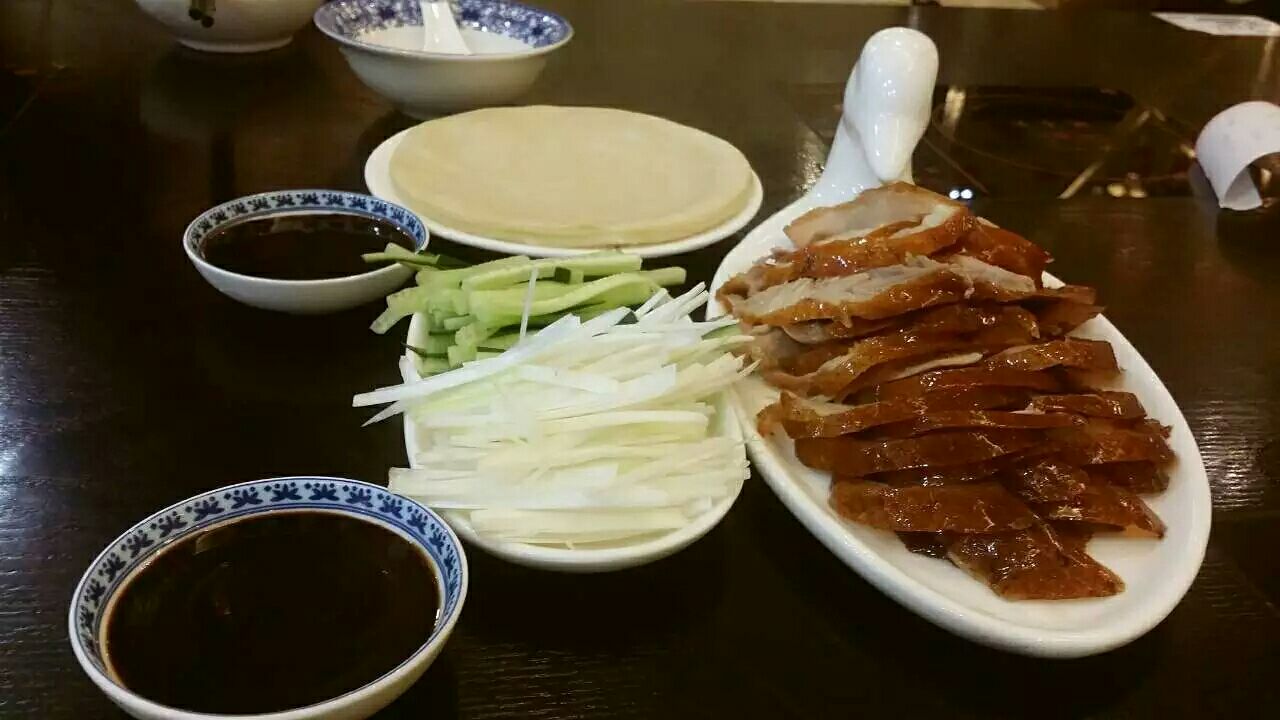 但是小火锅不是很行,底料不香,煮出来的菜也不入味!我建议两个人点半只就可以了,一只吃下去还是有点油腻我建议两个人点半只就可以了,一只吃下去还是有点油腻!他们家烤鸭还可以,皮脆肉嫩!薄饼我个人感觉有点厚。但是小火锅不是很行,底料不香,煮出来的菜也不入味!所以建议只吃烤鸭就好了!