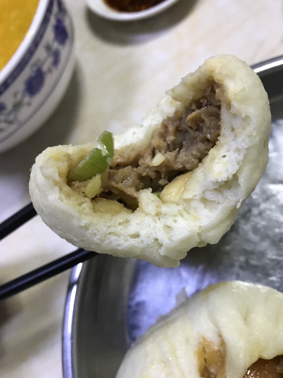 创意包子,我只服老陶! 每次去南大西南村觅食,都特别想去吃老陶包子,天冷不想多转悠,正好就拔草了。 因为去的早,所以没有排队,很多口味也都还有卖,特别开心。 招牌流沙包,甜,很甜!咬开的瞬间,流沙很诱人~ 咸蛋黄超人包,虽然不知道和超人有什么联系…不过这个创意真的很服!包子里有一整颗完整的蛋黄,口感不干,很神奇~ 猪肉大葱包,这个就比较家常啦,没啥说的,和创意包相比略逊色。 素馅包,其实就是津味儿素吧,但是没有酱豆腐!扣五分!还是喜欢正宗的。 黑芝麻包,这个要给满分了,因为本人特别喜欢吃黑芝麻,这个包子是点心好不好,咬开瞬间,芝麻糊往外冒!甜腻~ 另外,南瓜粥很好喝,甜甜的,比普通的小米粥佐餐洋气多啦~ 期间很多学生来来往往,感觉十几块钱能吃的很满足,开始格外羡慕学生生活~
