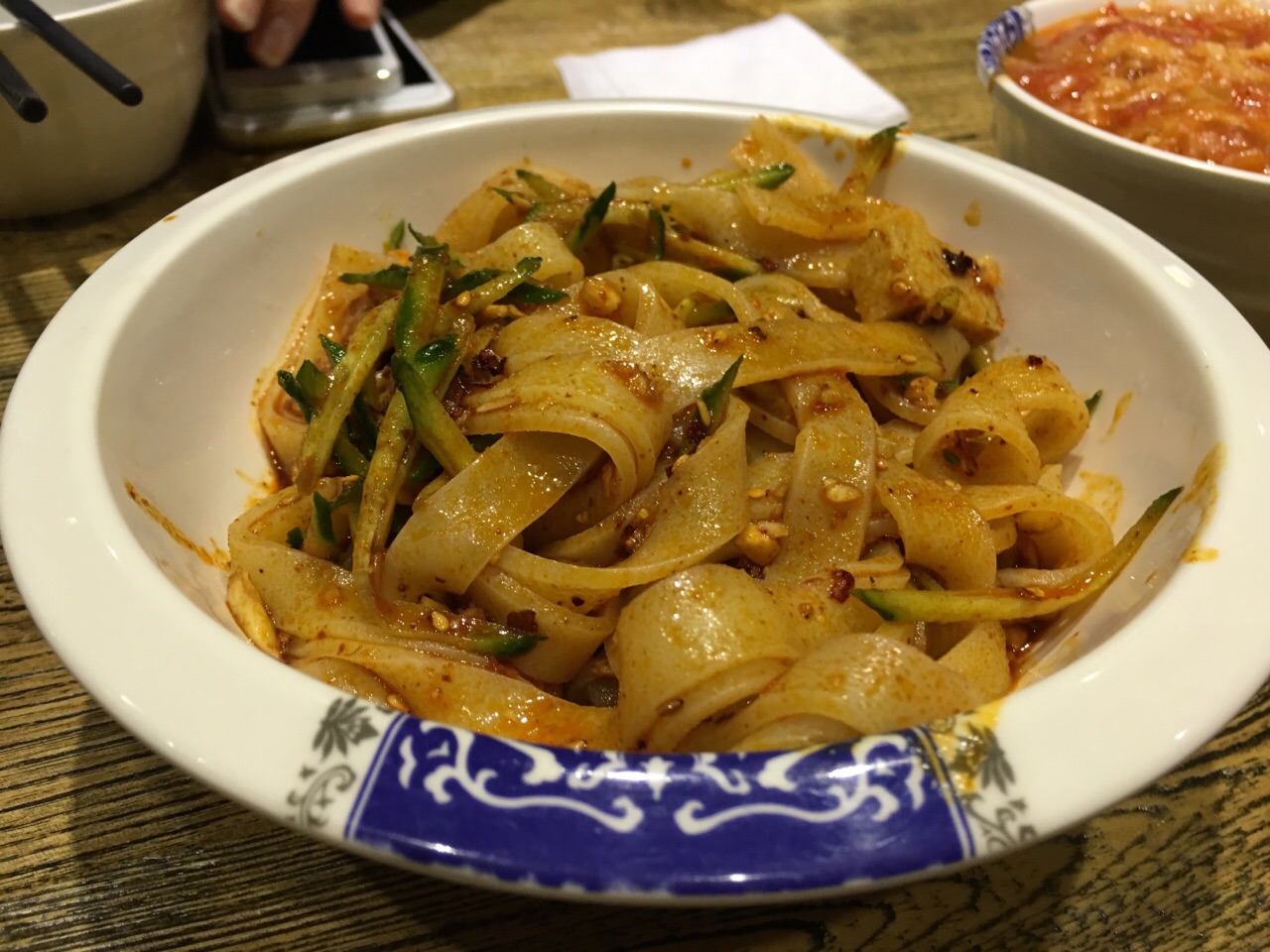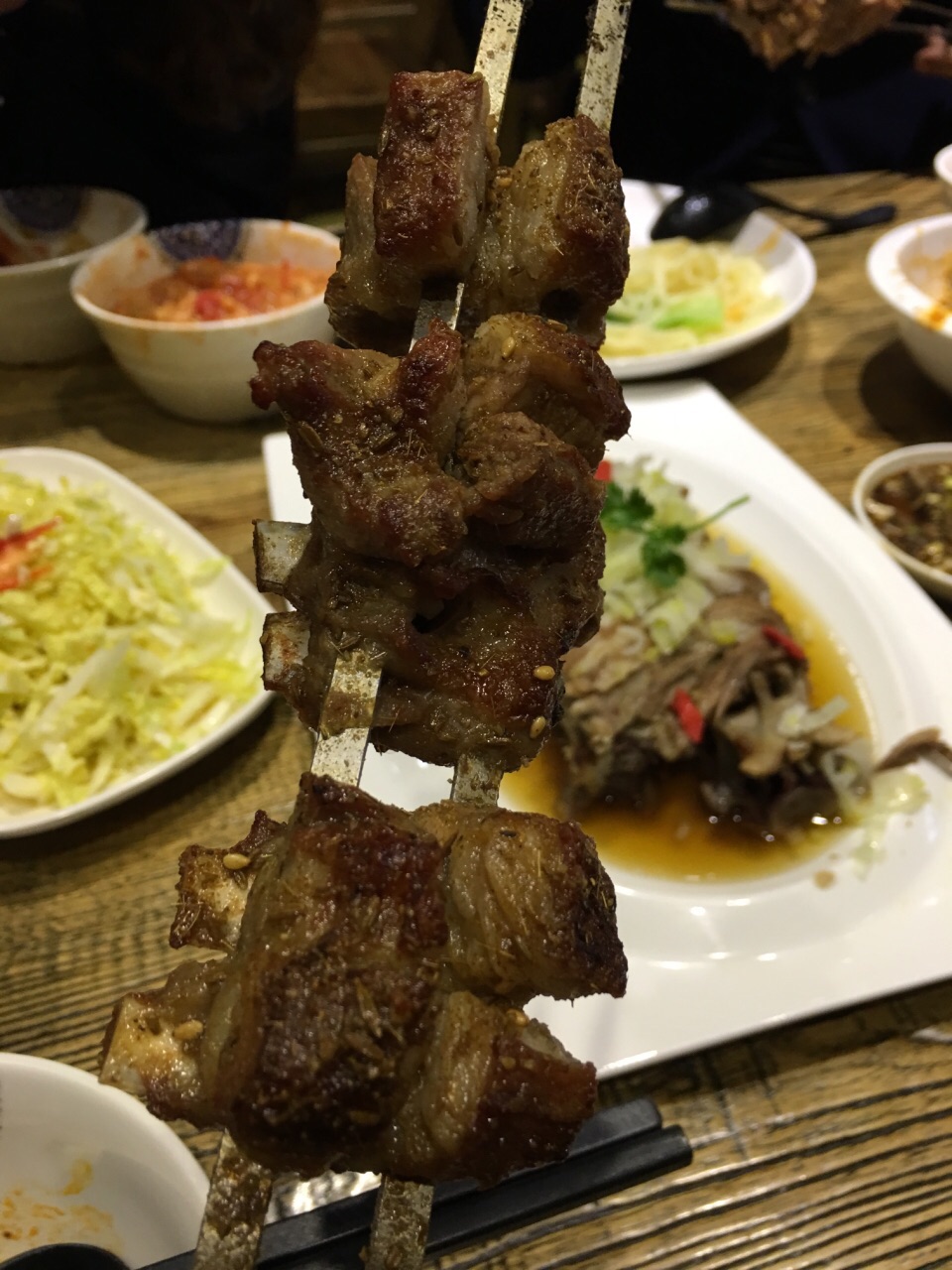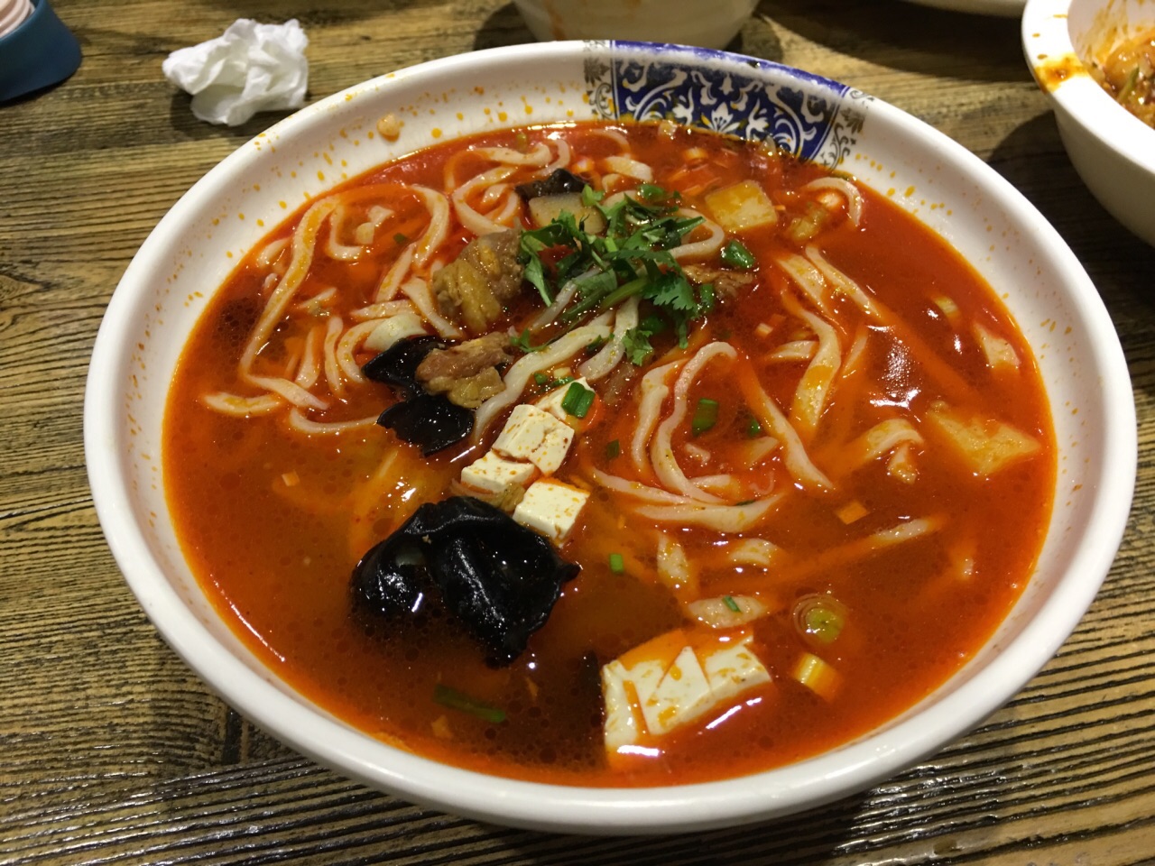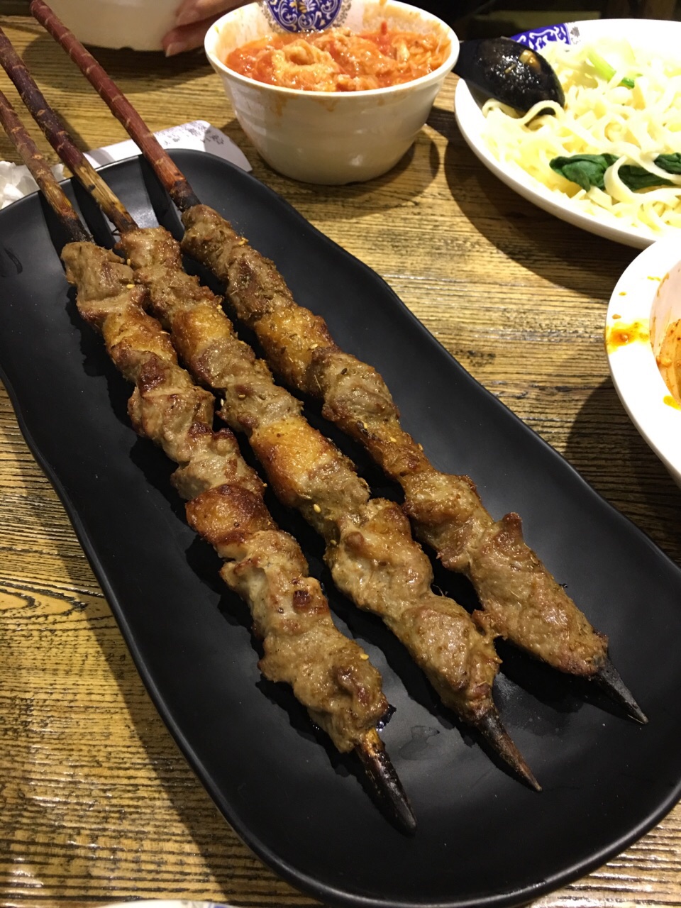 店内装饰走西北风,做的也大多是那边的菜品。宁夏的滩羊肉、羊肉臊子面和陕西的凉皮、面食等等构成了他家的主要食物种类。 和其他中式餐厅不太一样的是这里点餐需要先去吧台,点单完毕等着上餐就可以了,算是借鉴了KFC之类的方式。饭点人员集中的时候就要排队点餐了,所以最好提前想好吃什么,要是排队的时候再想点什么菜会耽误后面排队者的时间。 #烤滩羊肉# 作为肉食动物来这里吃饭必点的,滩羊肉吃起来没什么膻味,火候控制的也还行; #羊肉臊子面# 大概是这么个名字,作为主食,辣香口味,羊肉面里面有土豆木耳豆腐,汤多,一碗面差不多能吃饱; 凉皮味道也还可以,随便吃吃还是可以的。