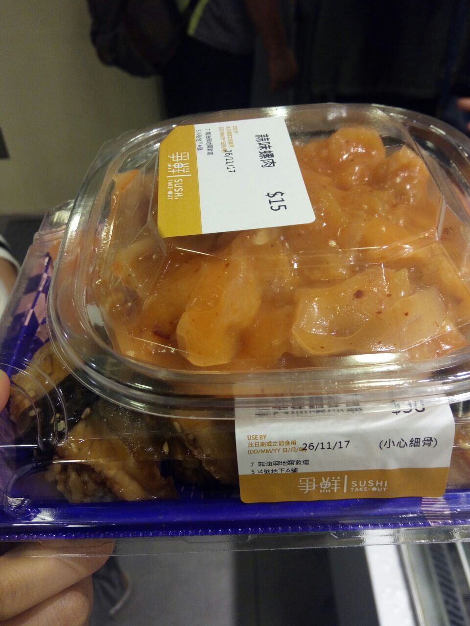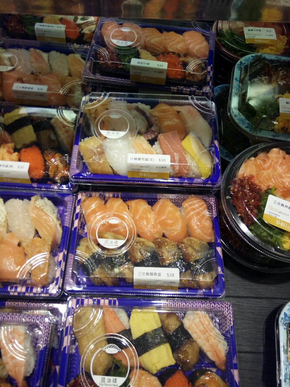 这次去香港争鲜外带寿司去了三家店……我都佩服是自己。 以前在荃湾那边的争鲜外带寿司买的最多,就是给的酱油芥末老是忘记多要几份,这次又犯这个错误了呀! 本来想直接买三文鱼刺身,小伙伴说坐店里吃刺身好,打包的就买寿司,表示同意,8点吃的晚饭9点半吃的小吃,十点半回酒店继续吃寿司,连着几天都是。