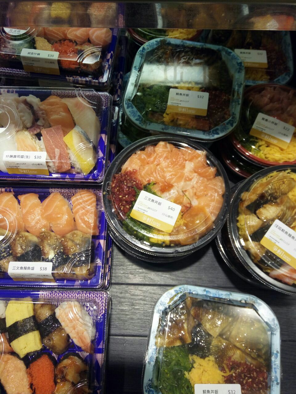 本来想直接买三文鱼刺身,小伙伴说坐店里吃刺身好,打包的就买寿司,表示同意,8点吃的晚饭9点半...