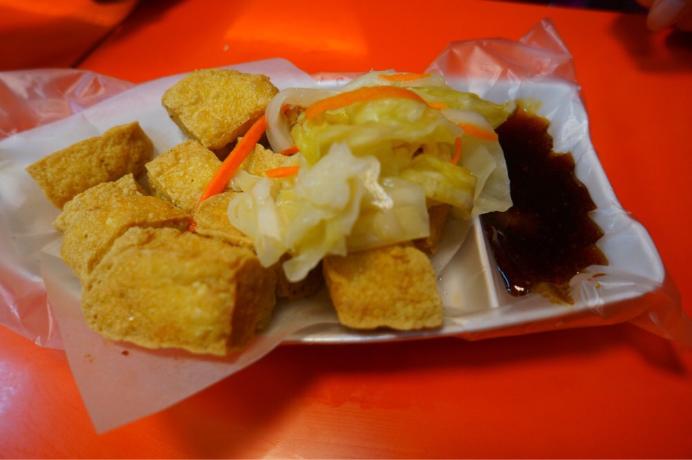 网友2017-12-06臭豆腐不是臭臭的,炸的很脆,会配上泡菜吃味道非常给力。味道相当的不错开了很久的老店,里面卖的臭豆腐和蚵仔面线都是招牌。味道相当的不错。臭豆腐不是臭臭的,炸的很脆,会配上泡菜吃味道非常给力。