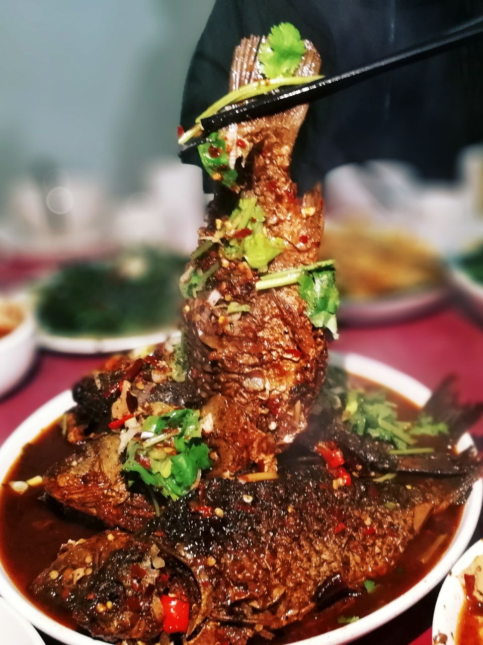 这家开了17年江湖私房菜深藏在茨坝村子里,看似超级不起眼的小店,在十多年前没人带领是找不到的,但吃过的人却被味道惊艳到。最大的特色菜是酸辣鲫鱼,骨酥肉香,人均一条是标配,那一碗用酸辣鲫鱼的汤汁煮后的豆腐,豆腐特殊的质地充分的吸收了汤汁,回味无穷停不下筷!图六的泡酒,很多人以为是果汁,却不知道居然是“大蒜”泡的!