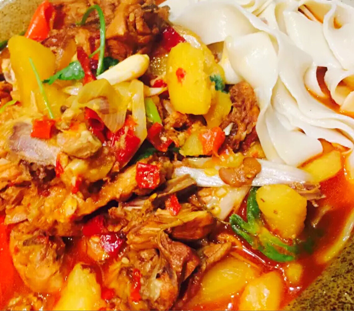 那时新疆·乌孙在南丰城北区的五楼,周末人气真旺啊,店里已经坐满了食客,进门就被玻璃房里的馕炕吸引,原来好吃的烤羊腿、烤羊排、羊肉串什么都是它烤出来的。 羊肉品质好,特别香,特别的酥嫩,最喜欢羊排萝卜汤,羊排嫩,萝卜甜,汤汁浓香鲜美,冬季喝了补身不怕冷了。 新疆大盘鸡正中,好大一盘,鸡肉好嫩,土豆绵绵的,很入味,还有面皮有嚼劲。 乌孙大盘鱼,量大,第一次吃有特色的。 自制酸奶,浓厚加了蜂蜜特别好吃。 吃饱了南丰城逛逛,好开心呀。
