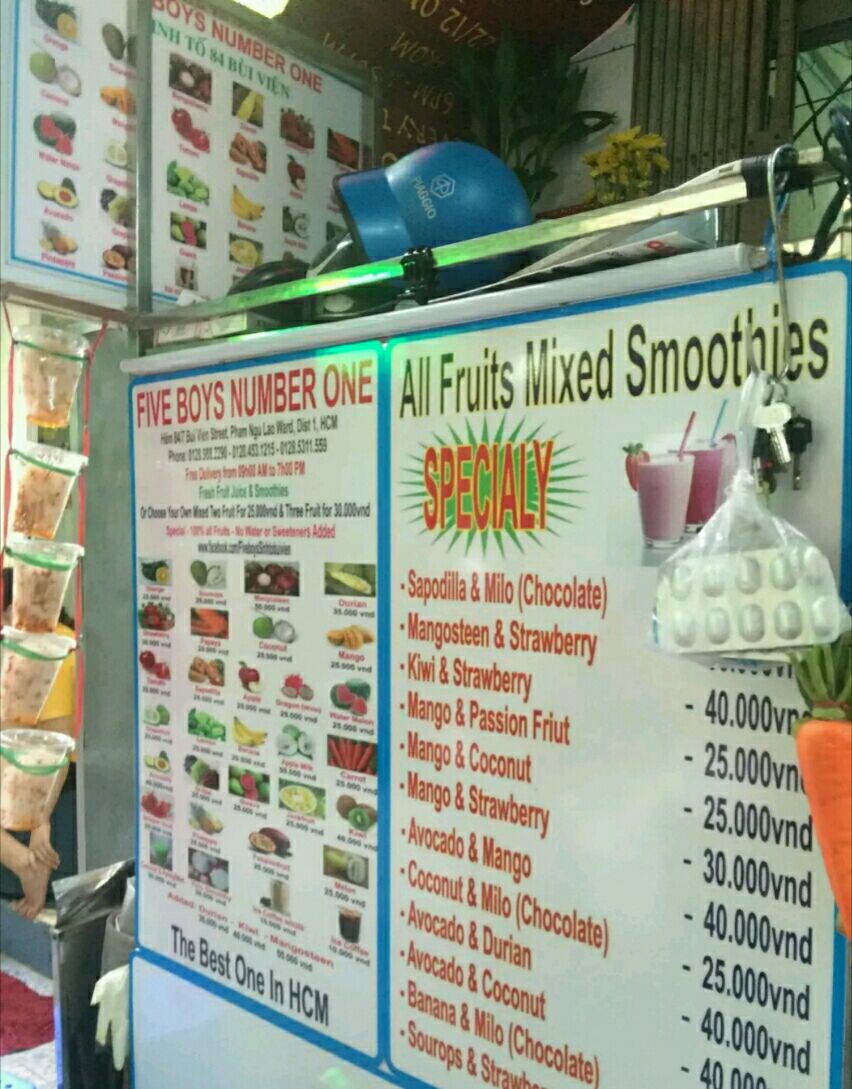 在胡志明的范五老街,似乎每一家店都应该是所谓的必吃、必游,不是每一家真的就有多好,而是每一家都充满了蜜汁诱惑,管你是半条街外就能看到的大招牌还是隐藏在喧闹人群里的小摊子。 这家店确实值得一尝。到了越南各种热带亚热带水果本来就不容错过,这家店就提供了水果大餐。