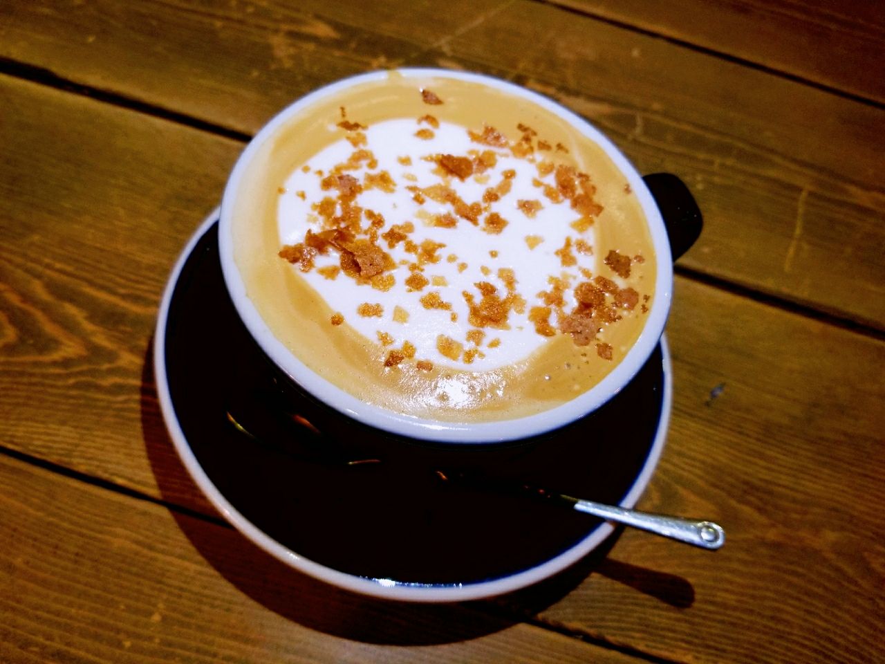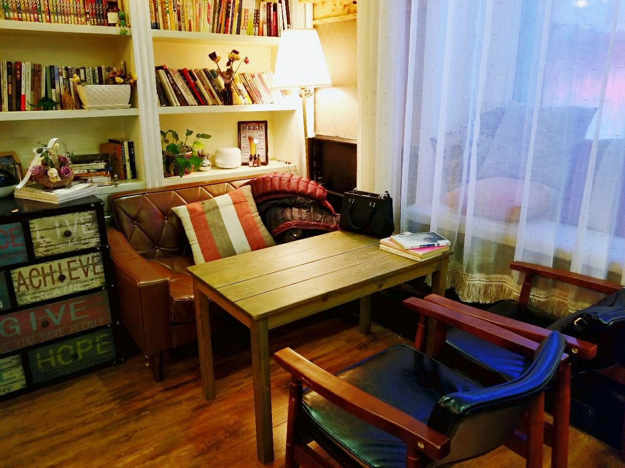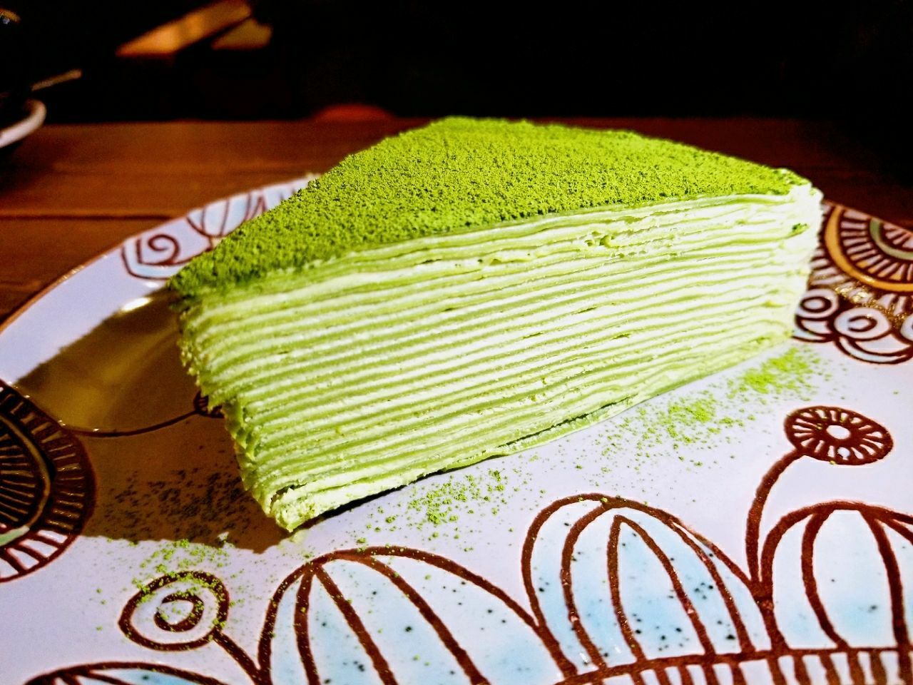 也不觉得尴尬。木质的地板,走起路来哒哒响,突然想起来小时候在同学家老房子里疯跑的课余时光。 假日的下午,店里人还真不少,很幸运的座到了店里靠窗的二人台。座位很舒服,点了一杯咖啡,一杯百香果柠檬茶,一块抹茶千层。很完美的搭配。 必须要说下服务,很暖心。点餐给你指点,甜品会送到座位,人多排队不好意思继续座下去,老板很暖心的说,不要慌不要慌。呵呵,的确,来这里就应该不慌不忙,在这里荒废一下午。