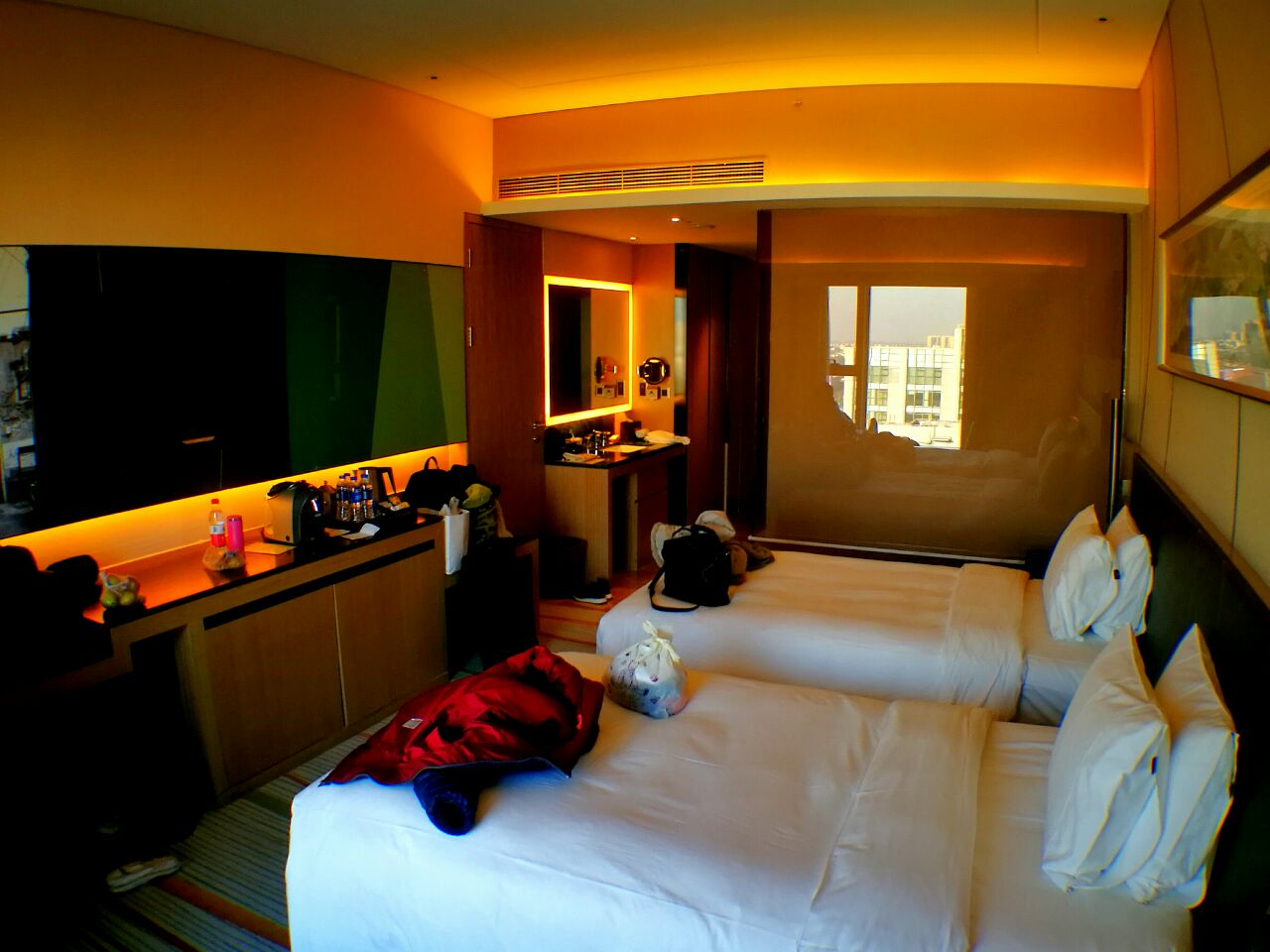 定的比较早,所以叶还算比较便宜。房间不错,楼层也很高,服务到位,酒店的装饰也十分现代!值得一试房间不错,楼层也很高,服务到位,酒店的装饰也十分现代!地处交通要道。值得一试。定的比较早,所以叶还算比较便宜。床单也很干净。
