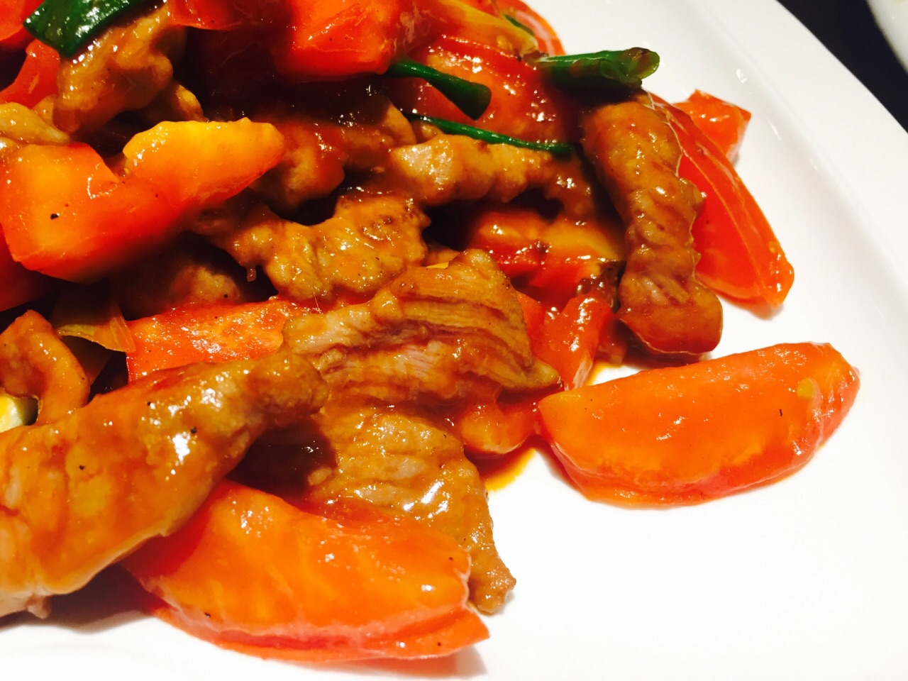 之前听一在苏州的台湾同胞说,他家的卤肉饭还挺不错的,经常会光顾。卤肉饭很少一碗,不得不佩服台湾人真的很会卤,万物皆可卤,肉,内脏,豆制品。配上黄瓜,腌渍萝卜解腻。白菜里好像加了特有的酱,有点海鲜的味道,不知道是不是xo酱,非常入味很好吃。番茄牛柳,番茄果酸可以让牛肉更加软嫩,意外的是加了大蒜,却没有抢味。环境很干净,椅子竟然是老法头的竹椅。