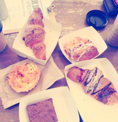 ...,例如馅饼、丹麦食品、牛角包、迷你酒吧蛋糕、法式面包、香肠卷和我最爱的香草饼干等等,非常诱惑人