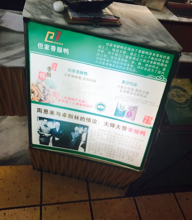 上一次吃还是2011年9月份,去贵州玩的时候,晚上出来觅食,无意中买到的,一口就喜欢上了那麻麻的味道,吃到嘴巴都木木的了,仍然觉得美味,尤其是热的时候吃,麻得更厉害更舒服。这几天脑公要去贵阳出差,我说要带特产,就要吃但家的香酥鸭。脑公买回来,虽然已经冷掉了,但是麻麻的味道还是熟悉的样子。冷了之后肉虽然韧得嚼起来费劲,但是骨头还是酥酥的,开心,可口。要是有机会,还会再买的。什么时候要是南京也能开几家就好了。