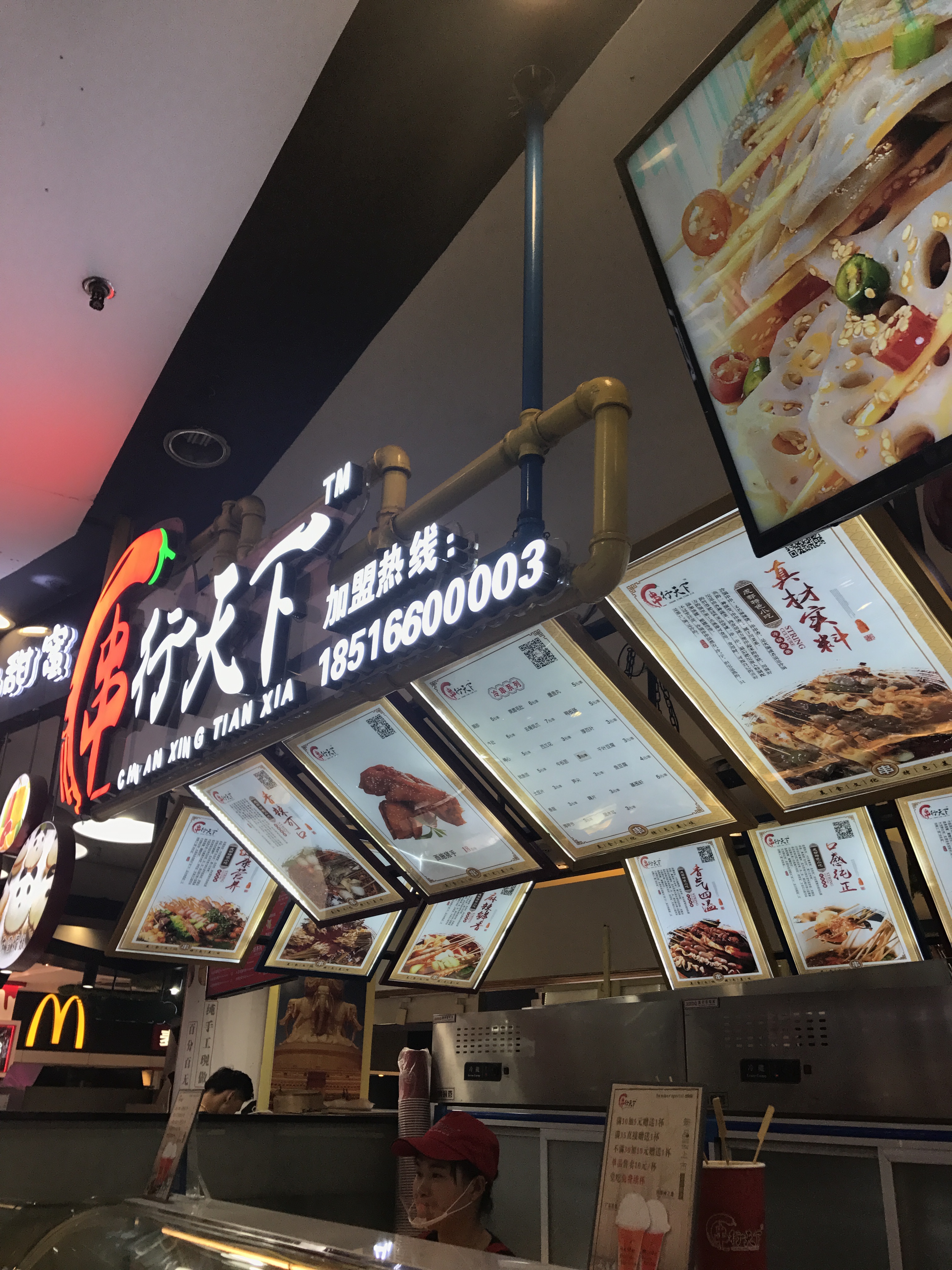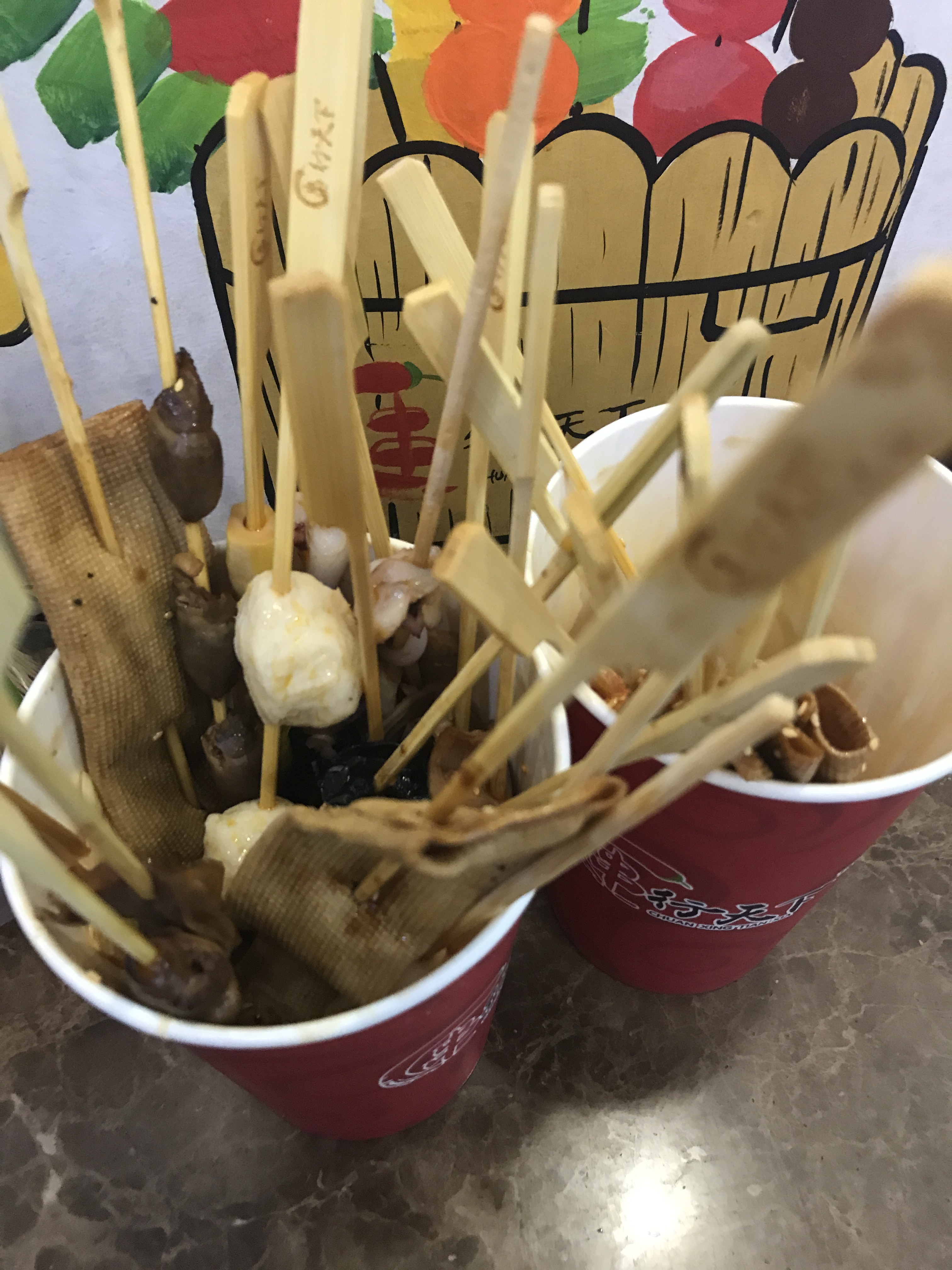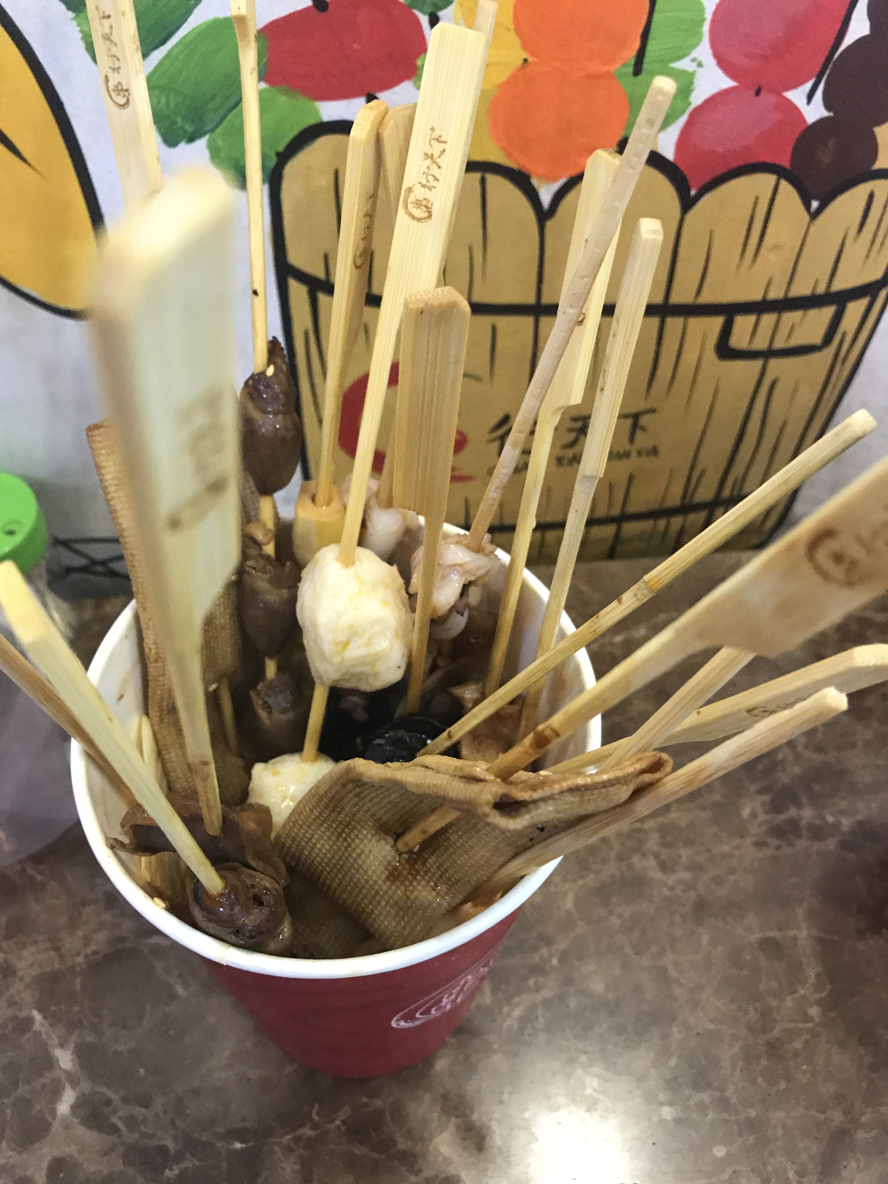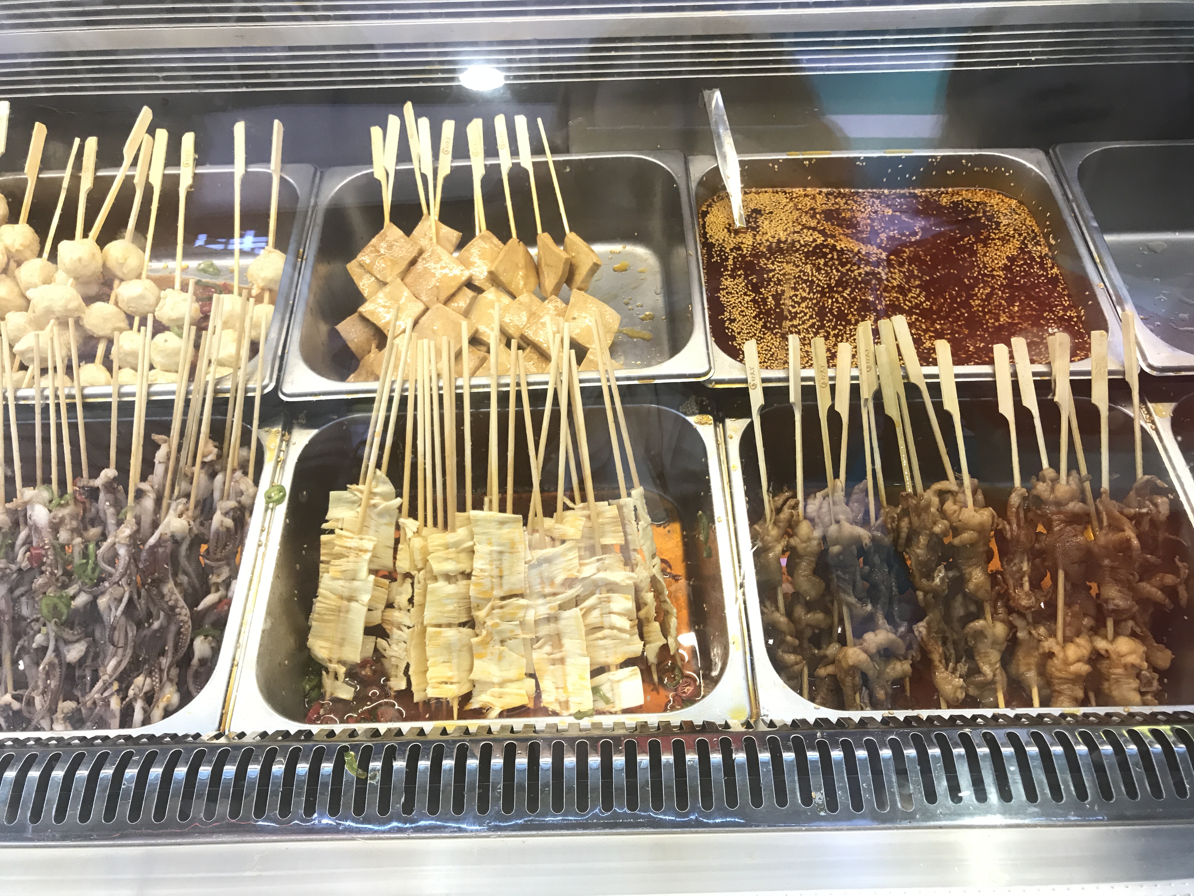 和小伙伴约了先去看看健身服,晚点再去吃夜宵,于是就近先觅食垫些底。 龙之梦B1基本上小吃都吃过了,看到这家新开的于是尝试一番。 柜台摆放很整洁,旁边有二个座位,比较小,还是拿着吃比较方便。 选了无骨风爪、千叶豆腐、木耳、牛肉丸、香菇等,味道蛮不错的,很香,也不是很辣。 适合解馋垫基,这样吃吃其实也蛮饱了,谁让我们肉点的多呢