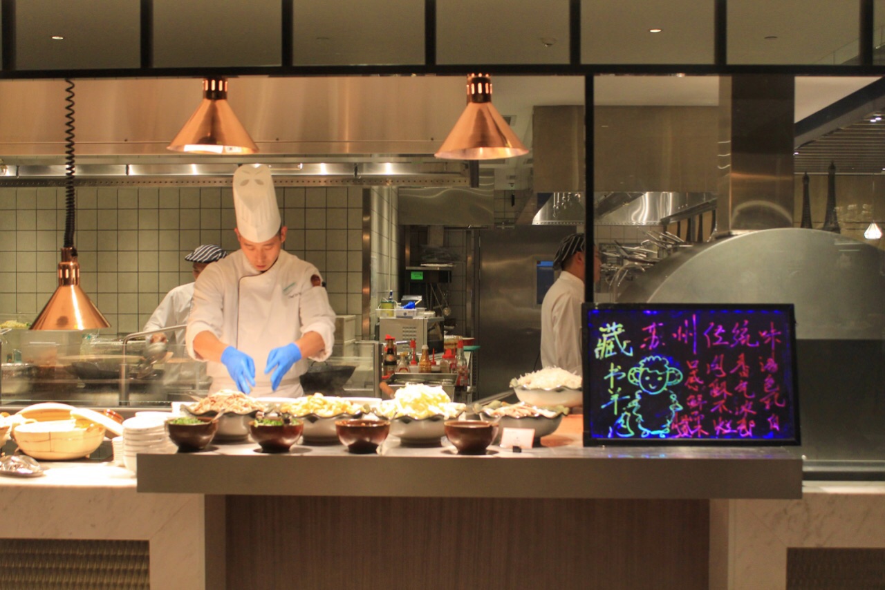 提供丰富的中西合璧菜肴,包括苏州本地食物、当日运抵的湖鲜、海鲜,各类面点、甜品,各式现场烧烤,这里是供应国际经典创意美味的市场,不同的季节都会在不同的特色档口适时推出应景的美食节活动。 自助档口360°环绕餐厅,给我的印象就是:东西多到完全吃不过来! 坐在餐厅一边享用美食一边感受窗外的风景,没有车水马龙,没有汹涌的人潮,只有世外桃源般的东太湖,至臻美妙体验。