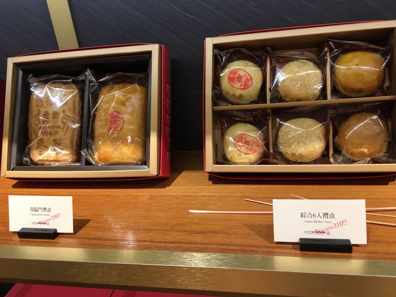 旧振南的饼类产品保存期大概只有十天,因此在台北机场的通路只卖保存期可以有两个月的凤梨酥。所以想要买到旧振南的喜饼的话,只能在台北的专门店或者是一共有八家的百货公司楼下可以买得到。如此短的保质期也就证明了旧振南的东西肯定是没有添加防腐剂的,这是它的品牌精神。