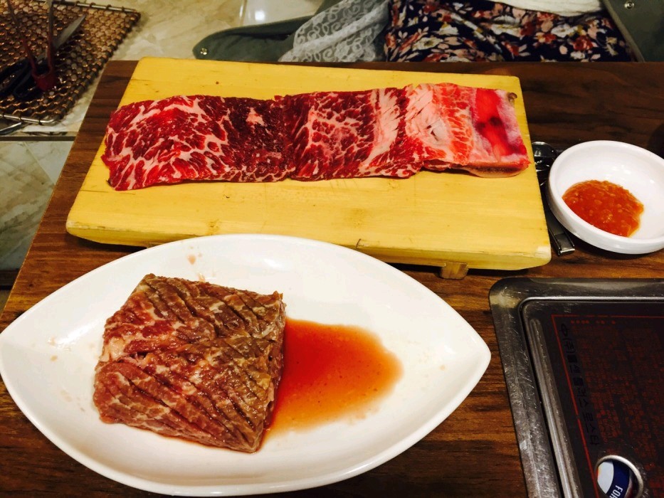 ...过韩国烧烤一定要吃他们的牛肉,牛五花,牛排,牛肋骨都来了一份,很好吃,就是荷包有点点小小的压力里面只卖牛肉,一顿饭好贵,不过韩国烧烤一定要吃他们的牛肉,牛五花,牛排,牛肋骨都来了一份,很好吃,就是荷包有点点小小的压力。