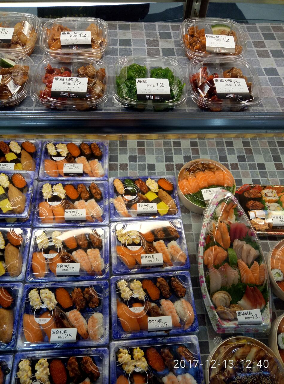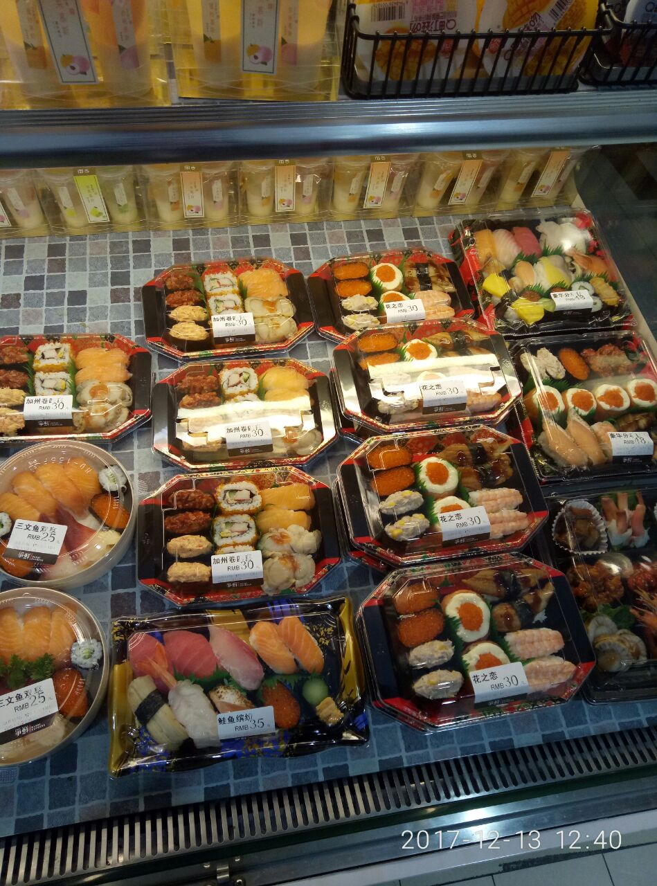 ...箱有装好的各种寿司盒子,还有小菜和饮料,就是现在这个季节吃的话会有点冷,夏天的话还是很喜欢吃的在海光寺家乐福里一层肯德基对面就是,门口是冰箱有装好的各种寿司盒子,还有小菜和饮料,就是现在这个季节吃的话会有点冷,夏天的话还是很喜欢吃的