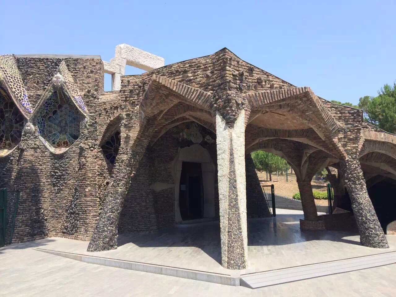 古埃尔领地教堂,外观如同岩洞,相对于高迪的其他建筑,空荡荡的站台,马路和礼拜堂,有点被遗忘的感...古埃尔领地教堂,外观如同岩洞,相对于高迪的其他建筑,空荡荡的站台,马路和礼拜堂,有点被遗忘的感觉,地下礼拜堂2005年被选为世界文化遗产