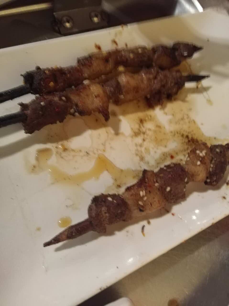 吃了好多年的羊肉串,一串五块肉,两大块肥肉肉,跟以前比差太远啦,不敢恭维啦