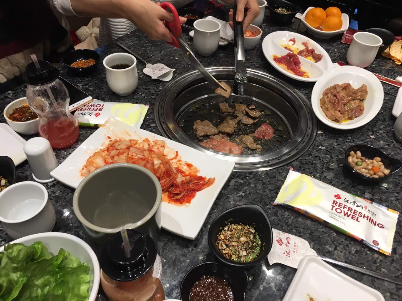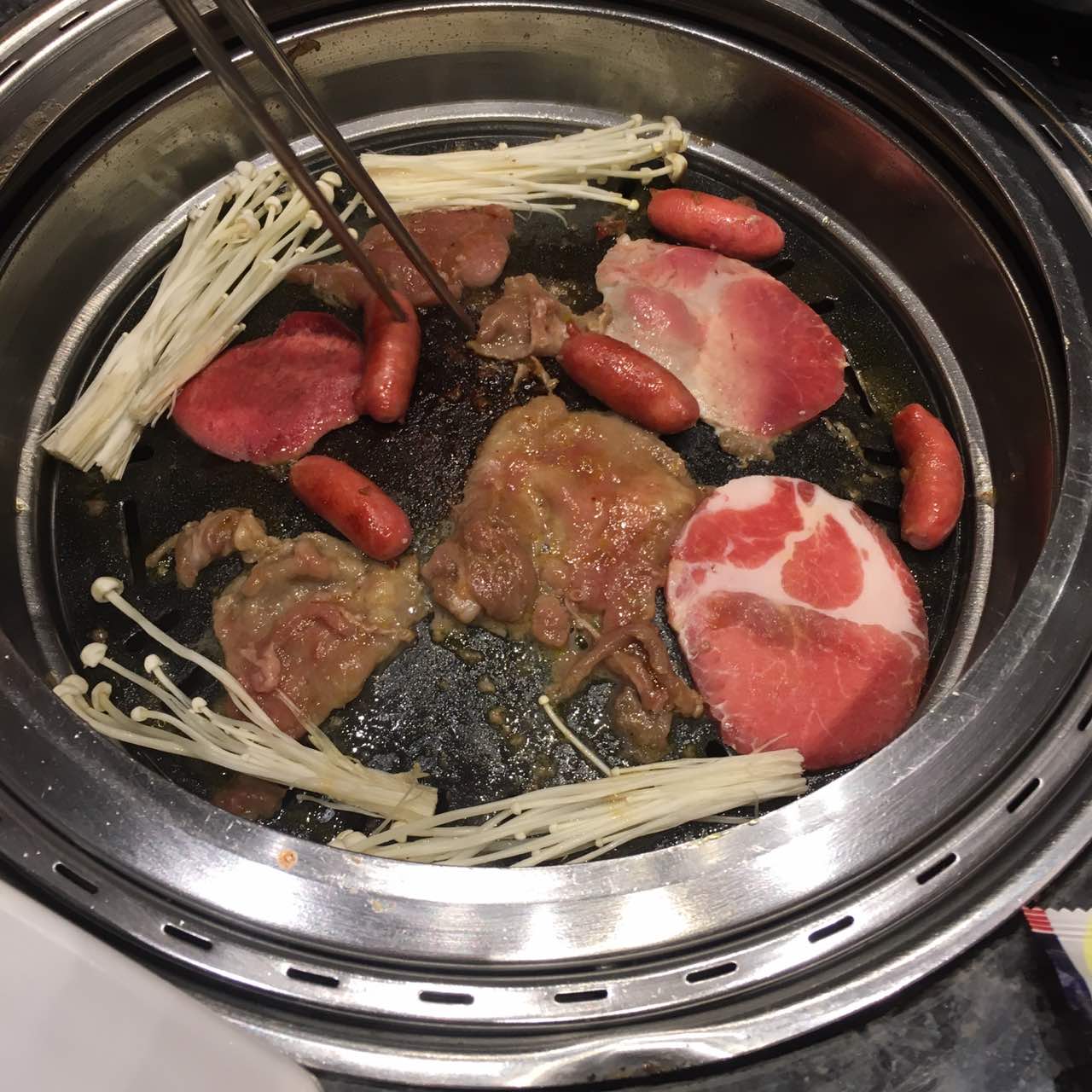 那个什么肠??蜜汁味道 六人桌的设计很不合理诶 烤肉盘竟然不是在中间? no next