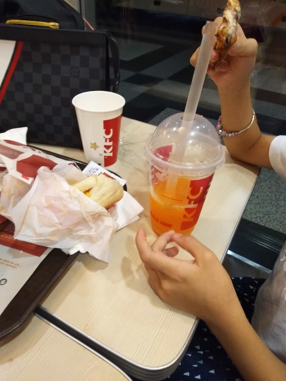 因为赶时间,要赶飞机所以选择洋快餐是最正确的,速度快!