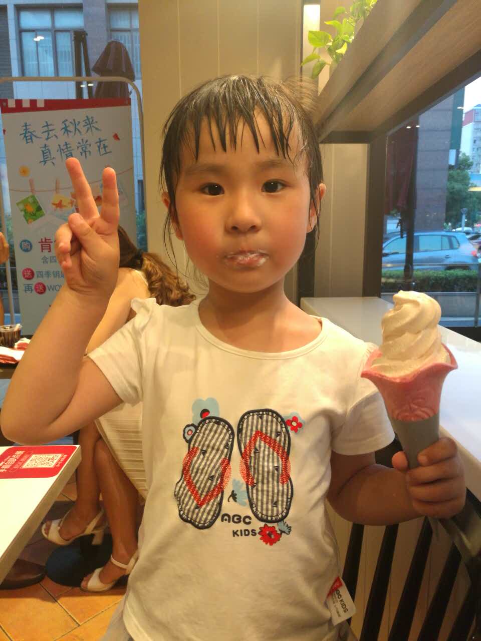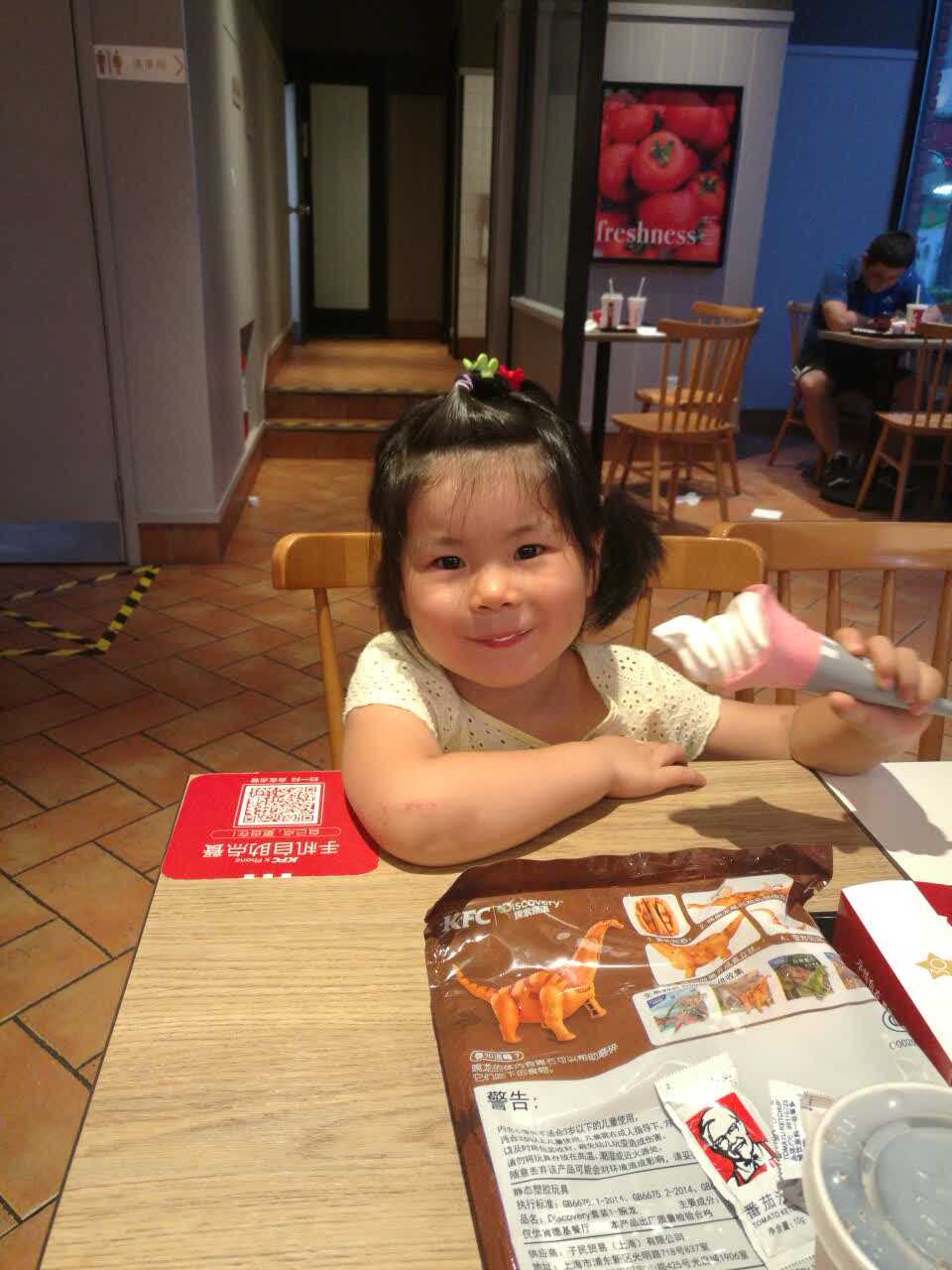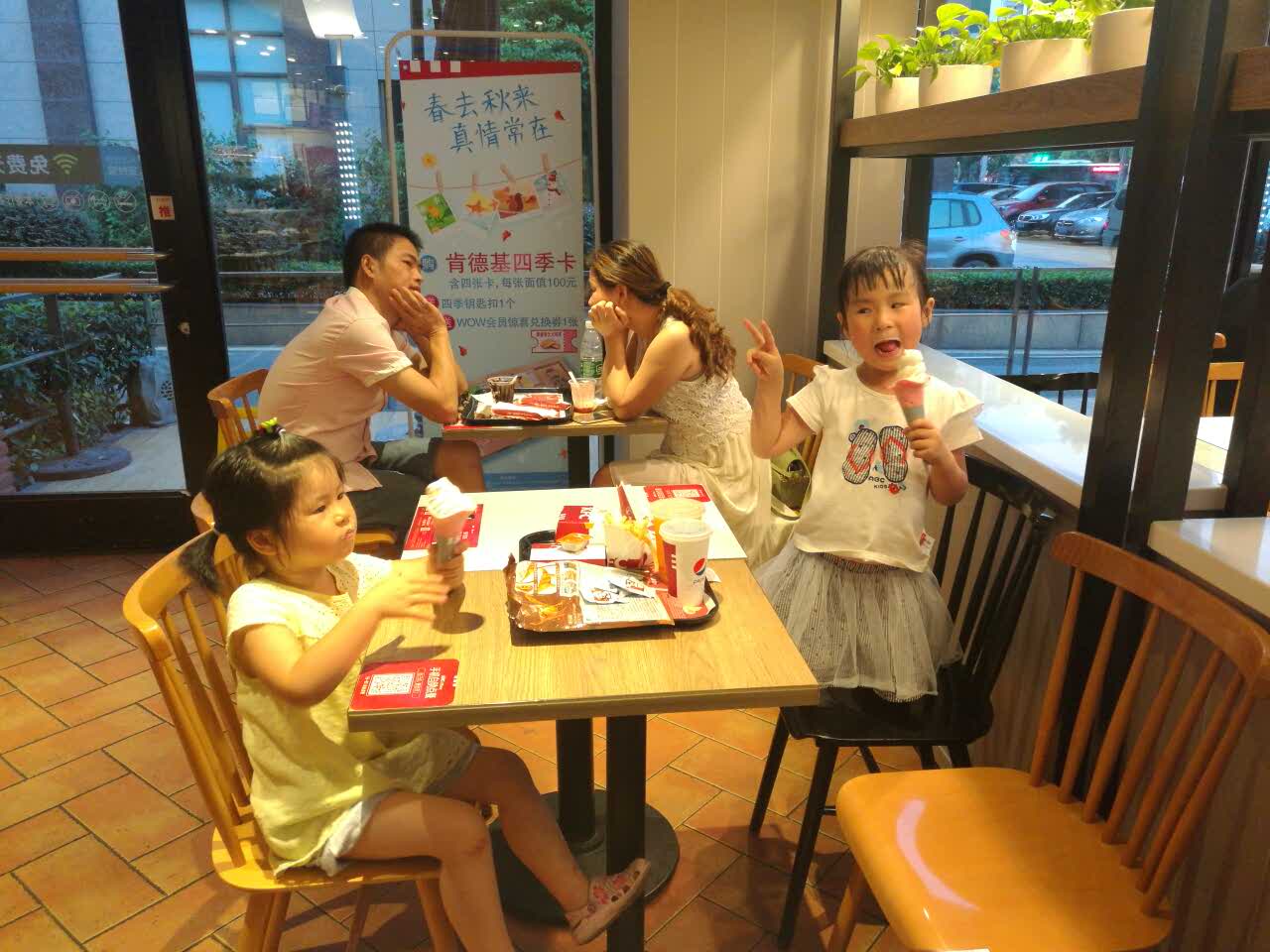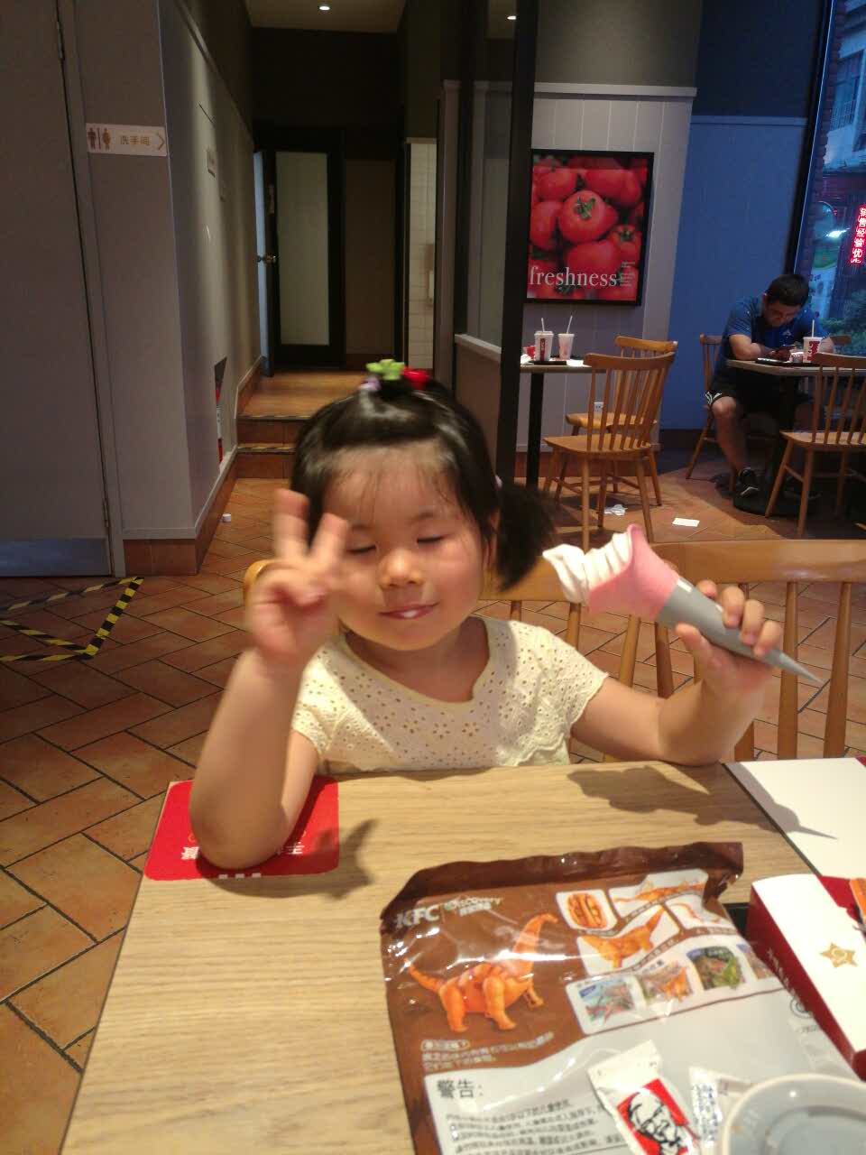 今天带两个小朋友一起就餐噢!小朋友好开心啊!